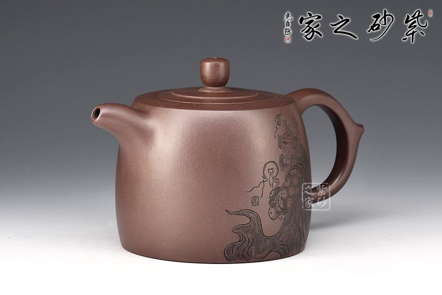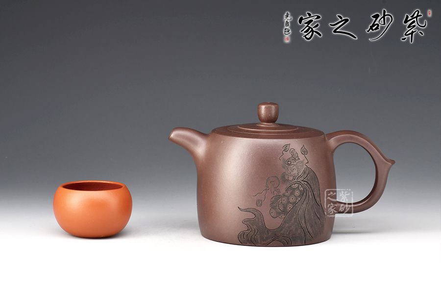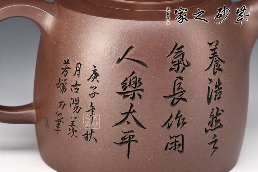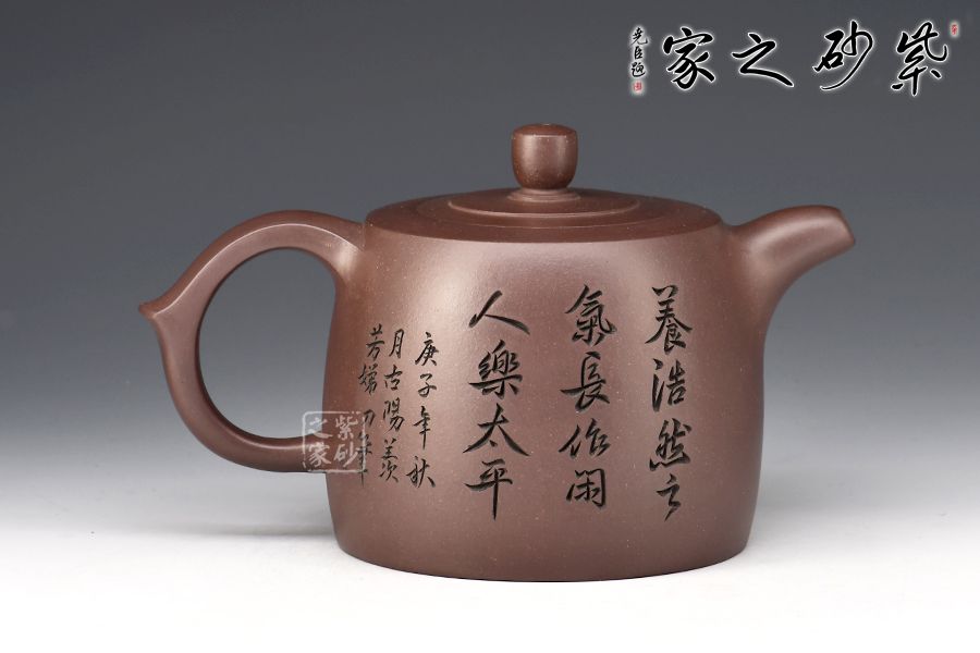 井欄壺寓意,深井有如文山書海,知識有如井水,取之不竭。此壺造型古樸、方圓周正,蘊含著人文意識,醞釀出視覺美感。觀此壺,猶似任爾風吹雨,我亦悠然閑庭度,可稱之壺之隱者。