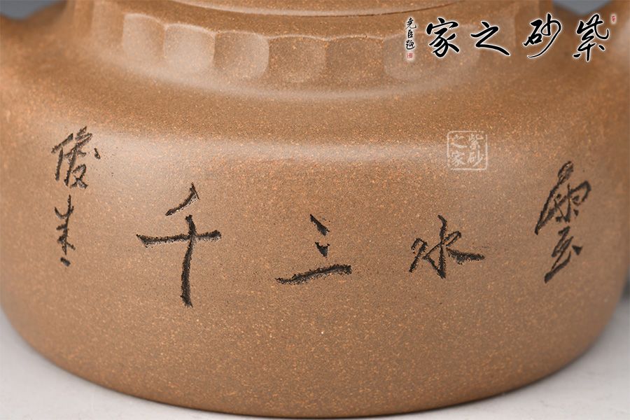 此款云水三千壺形似德鐘,老師在德鐘造型的基礎(chǔ)上加以創(chuàng)新,將德鐘的壓蓋改為嵌蓋,與壺口一體,仿若天成!此壺的另一個亮點在于壺頸處拍打的一圈圖案,看似簡單,組合在一起充滿禪意,好似佛光普照!壺身由呂俊杰大師刻繪,價值倍增,此壺值得入手!