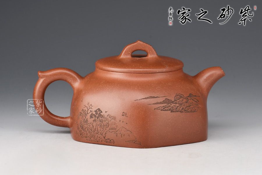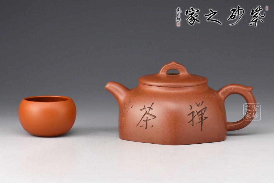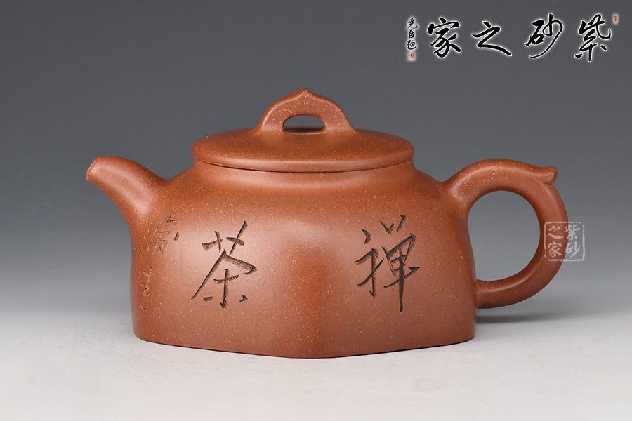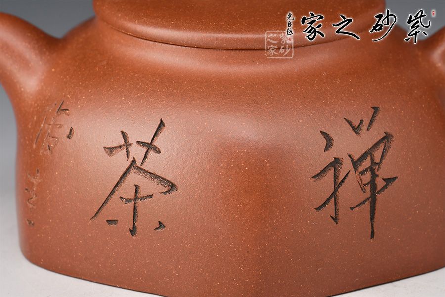 此款作品壺身略扁,色澤淳樸,一彎流胥出,出水暴爽,圈把抓握舒適,橋鈕平蓋,壺口較大,投茶特別方便,整器簡潔大方,壺身由國大師呂俊杰刻繪“禪茶”二字,價值倍增!此壺不論自用收藏或送人都極為推薦!