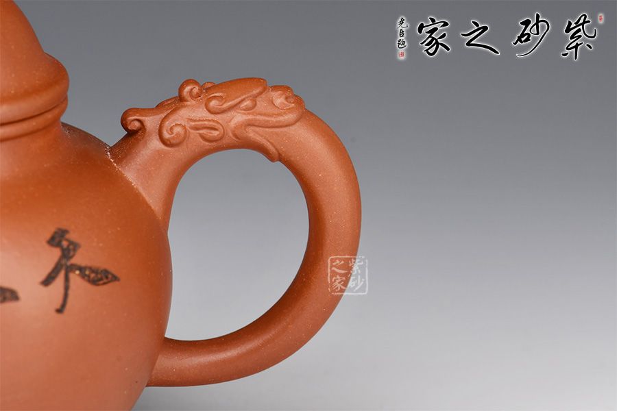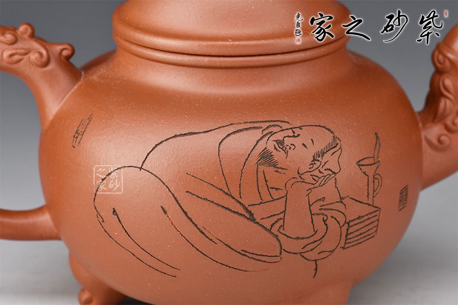 “天人合一”是中國人傳統(tǒng)的精神追求,此壺名為天人合一,與掇球壺形似,壺身為一個球,壺蓋為半球形,壺嘴、壺鈕與壺蓋以祥龍裝飾,作為中華民族的象征。壺身由國大師呂俊杰刻繪,師徒強強聯(lián)合,入手即升值!