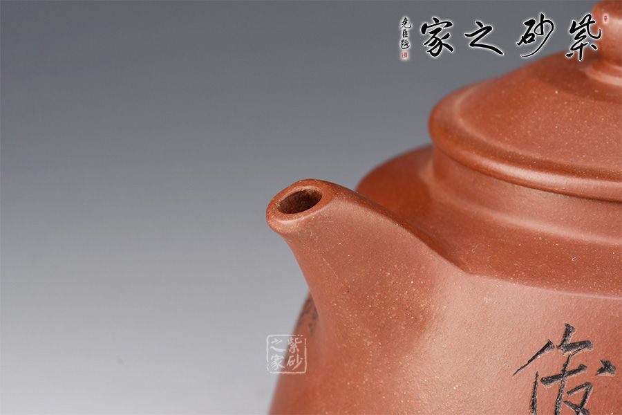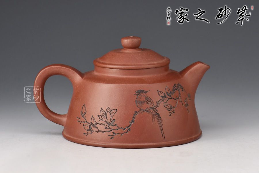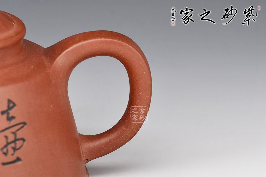 此壺壺身近梯形,上窄下寬,一彎流自壺肩出胥出,圈把與壺嘴兩相呼應(yīng),張力十足,壓蓋上立一寶珠鈕,有畫(huà)龍點(diǎn)睛之感。整壺端莊穩(wěn)重,泥質(zhì)細(xì)膩,做工講究,國(guó)大師呂俊杰刻繪,價(jià)值倍增,收藏升值力薦!