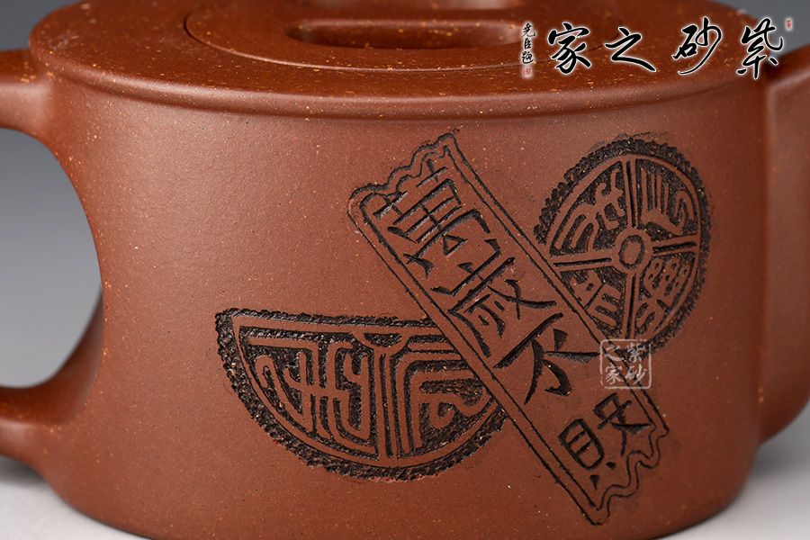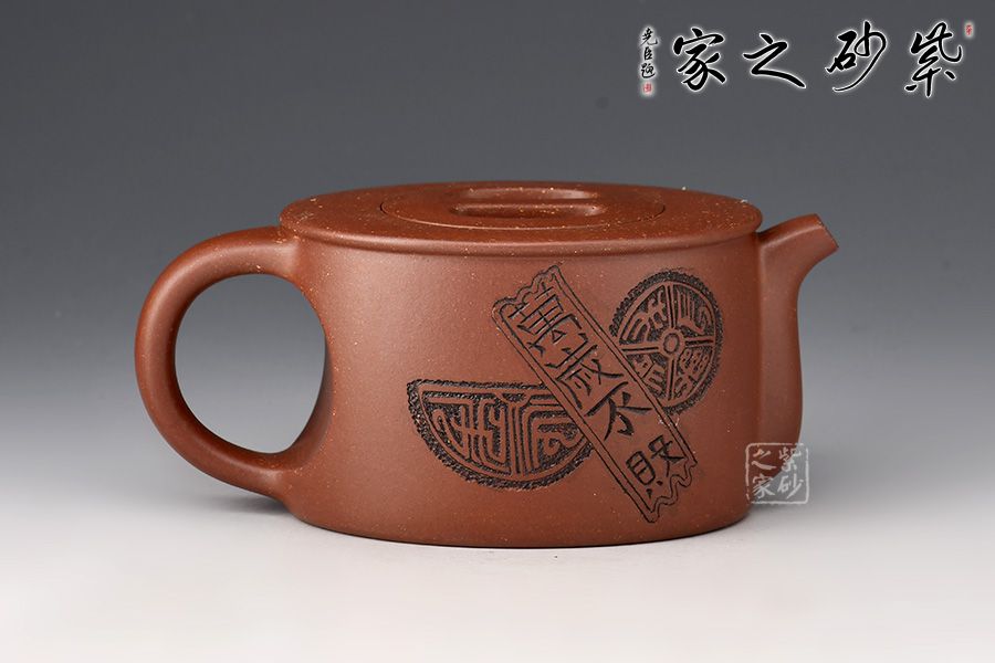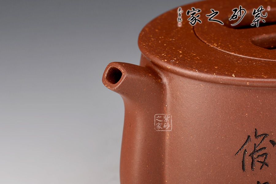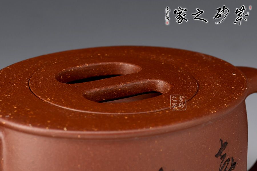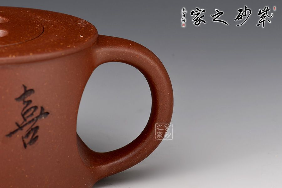 壺身線條挺括,精、氣、神俱佳。嵌蓋設(shè)計(jì),與壺口緊密結(jié)合,壺鈕制作別出心裁,整體像牛鼻孔式的鏤空結(jié)構(gòu),生動(dòng)與趣味完美結(jié)合。壺嘴與整體氣韻相結(jié)合,胥出自然。耳把線條流暢,拿捏舒適。此外,壺腹由國(guó)大師呂俊杰刻繪,師徒合制,升值加倍,推薦收藏!