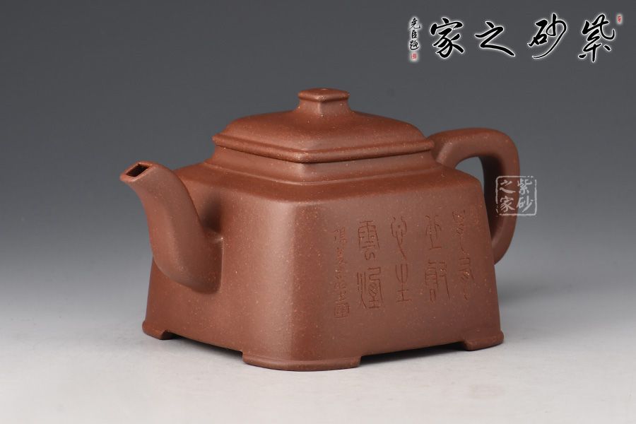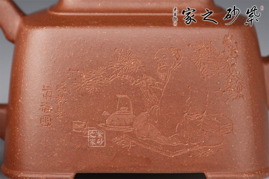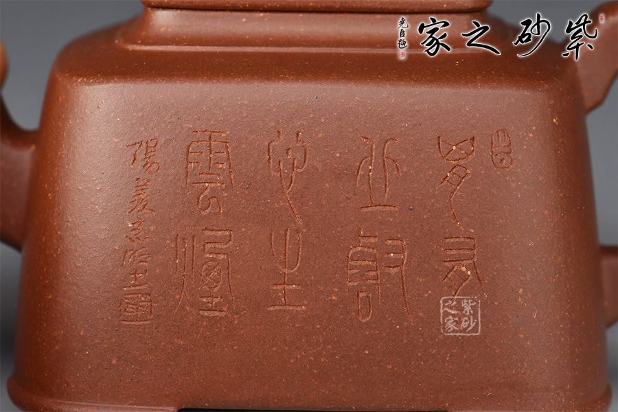 此壺友四方橋頂之形又有作者的創(chuàng)新,工藝難度頗大,方中寓圓,圓中有方,