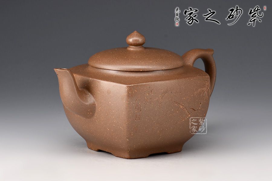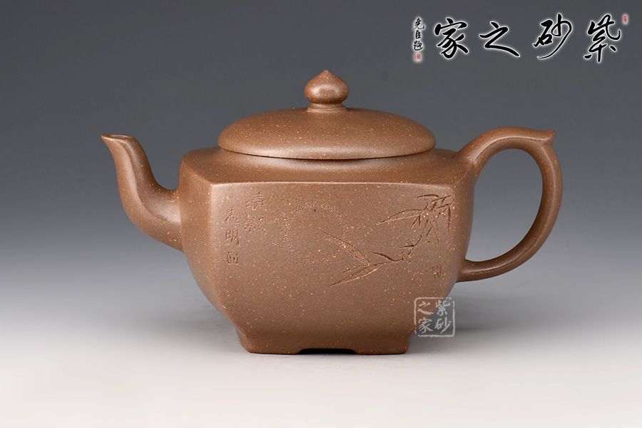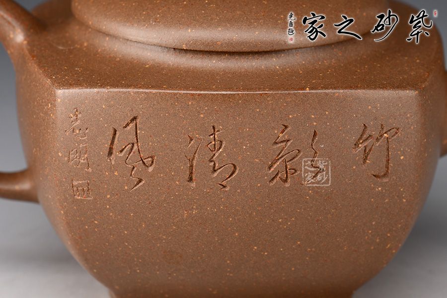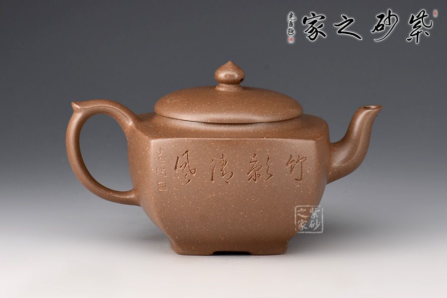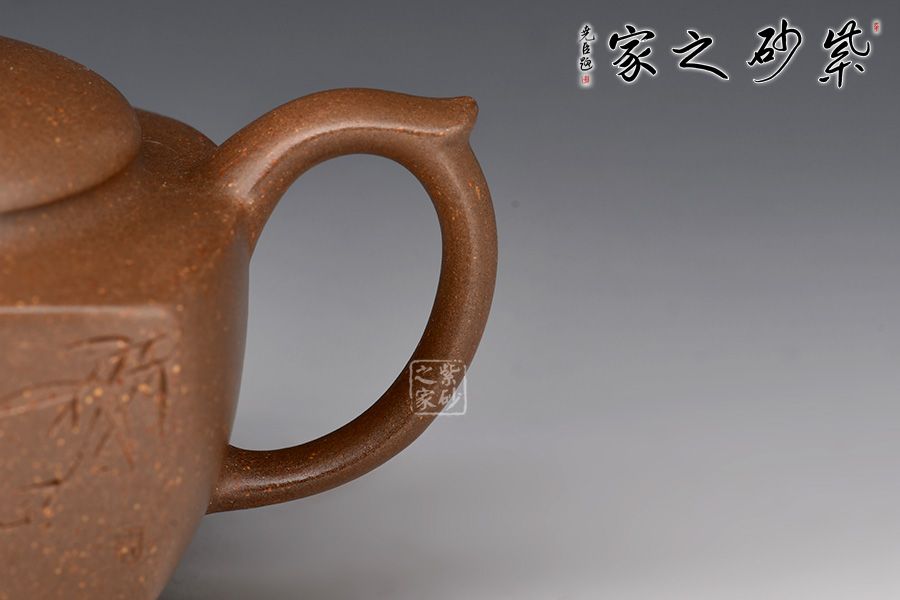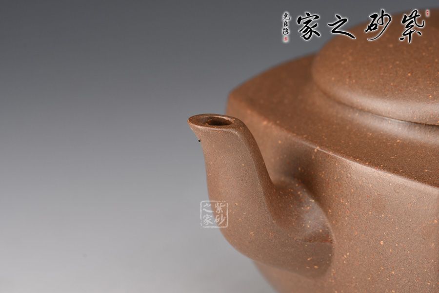壺身線條流暢,氣韻貫通。平整圓蓋完美嵌入壺身,契合如一體,是“天圓地方”的古老宇宙觀的自然寫照。三彎嘴,力度和美感并存,體現(xiàn)虛心、向上和有節(jié)之寓意。飛把粗細有致,拿捏舒適。整器線面挺括平整,明暗交接分明,帶給人干凈利落的快感,似寓意善惡分明,又傳達出剛勁正直的胸襟氣度。