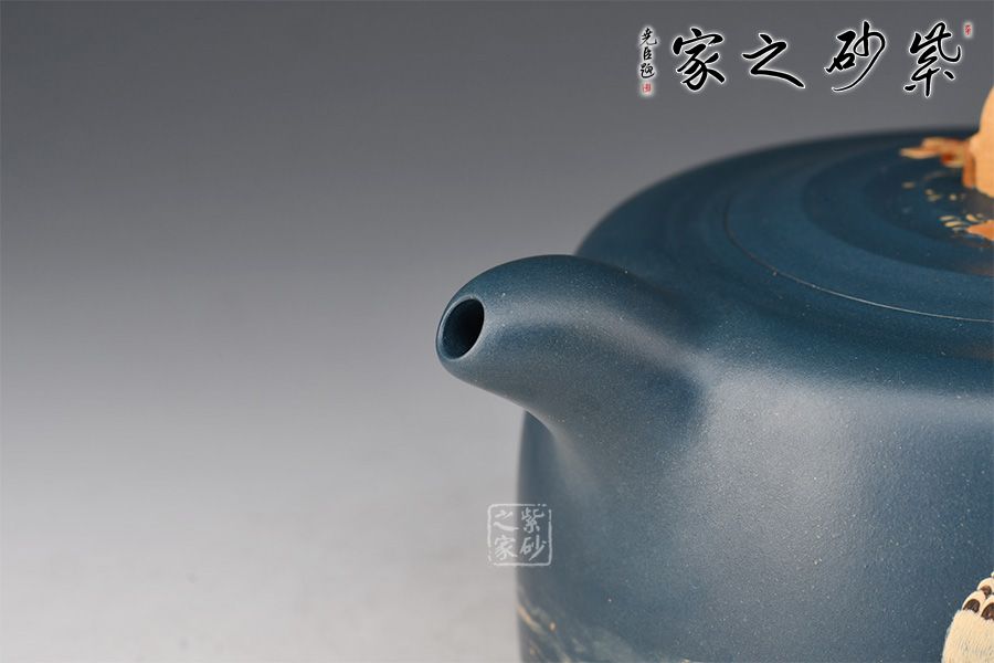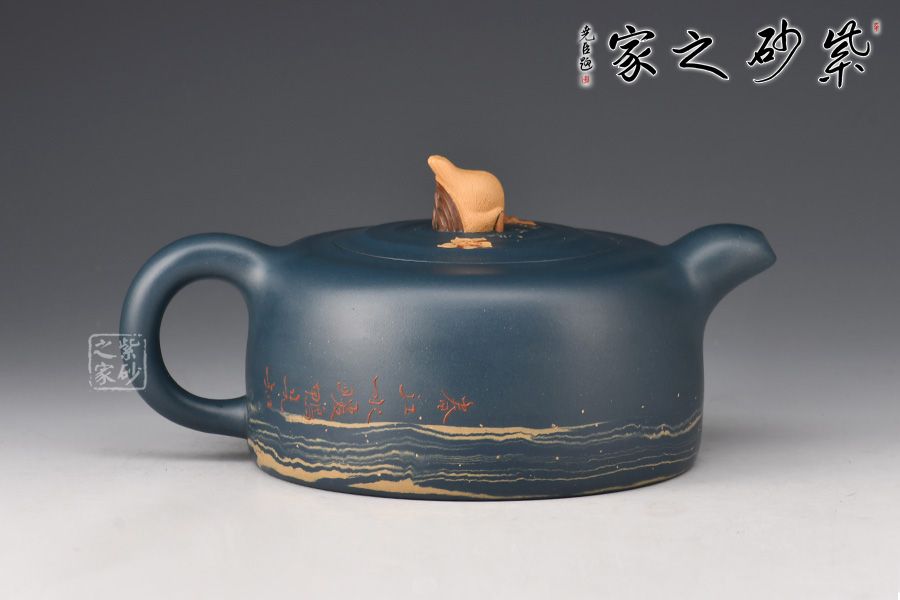 特點(diǎn):泥色特異,青藍(lán)色中略泛綠光,清秀獨(dú)特;稍一泡養(yǎng),色調(diào)更形穩(wěn)實(shí),溫潤(rùn)透明,變化甚巨,玩賞深具成就感。