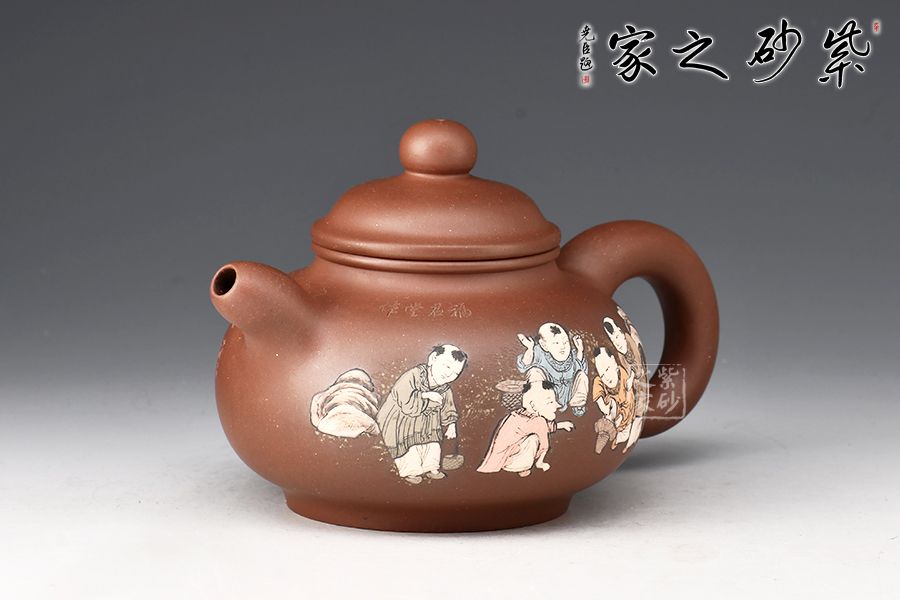 光貨離不開裝飾。俗話說“壺隨字貴,字隨壺傳”:光壺不刻字,就是一把光壺;壺上面刻了大師、名人的字,一把壺的含金量就高了,收藏價(jià)值就更高,升值潛力就更大。王福君與中國工藝美術(shù)大師譚泉海合作最多,其次是徐安碧、鮑志強(qiáng)、毛國強(qiáng)(均為中國工藝美術(shù)大師、中國陶瓷藝術(shù)大師)。