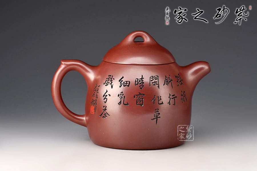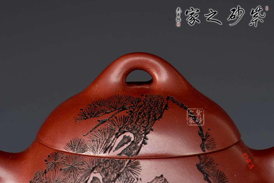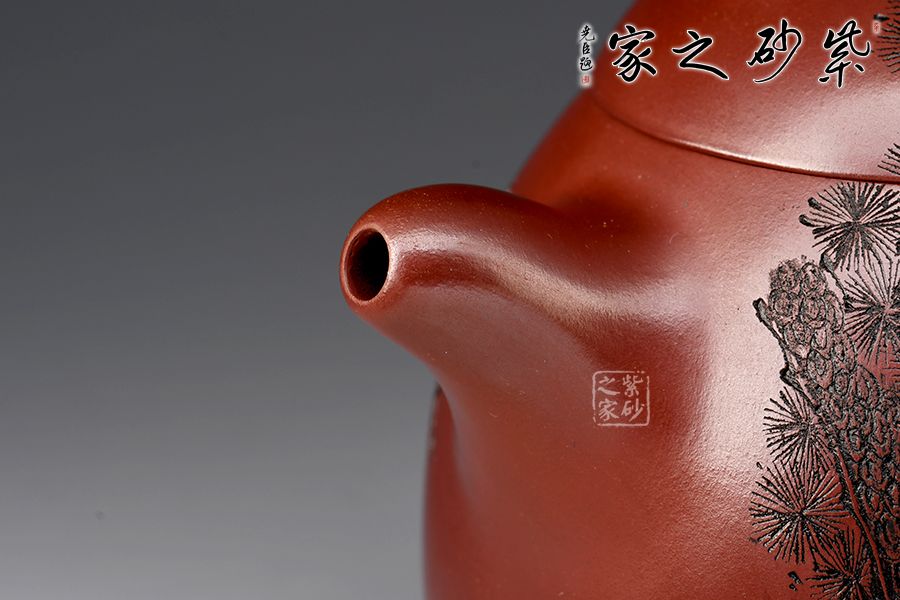 整款壺極其簡練、古樸,橋鈕壓頂,與壺身形態(tài)相應(yīng)和;顯內(nèi)斂、沉穩(wěn),正切合秦權(quán)古韻。