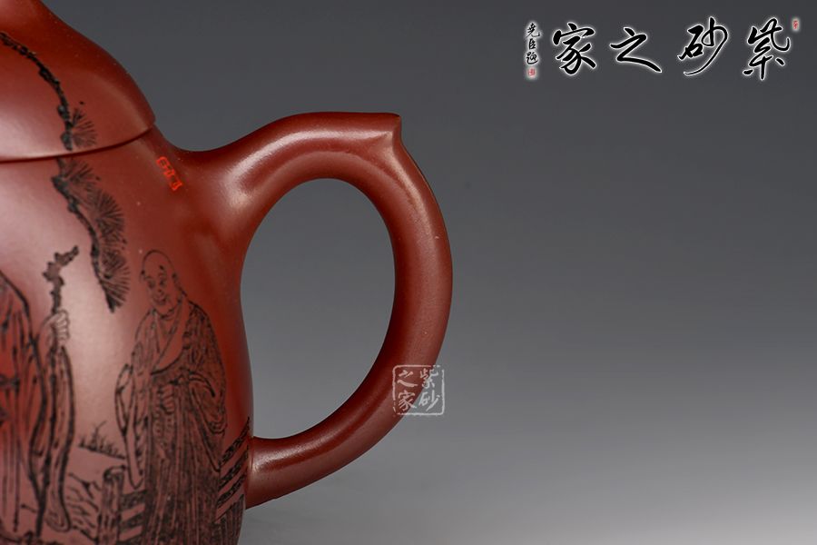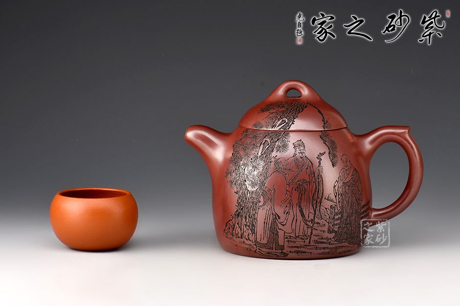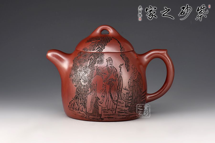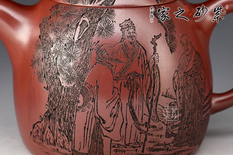 壺身刻繪《虎溪三笑圖》,“紅花白藕青荷葉,三教原本是一家”。