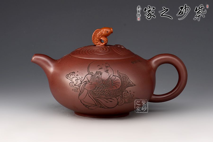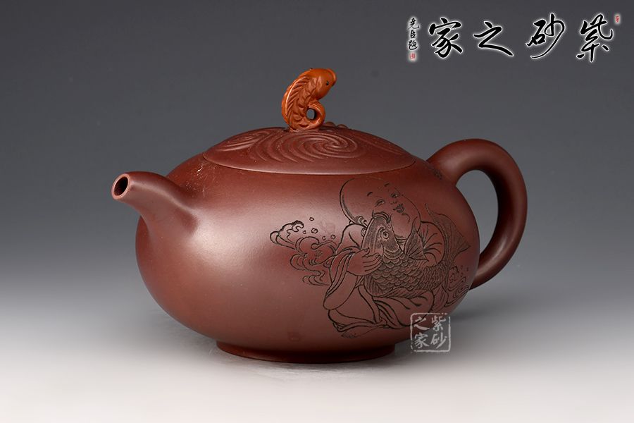 此壺壺身飽滿圓潤(rùn),色澤溫潤(rùn)可人,創(chuàng)意十足。“年年有余”,“年年有魚”,“魚”“余”諧音,皆是中國(guó)傳統(tǒng)吉祥祈福最具代表的語(yǔ)言之一,它代表生活富足,每年都有多余的財(cái)富及食糧。