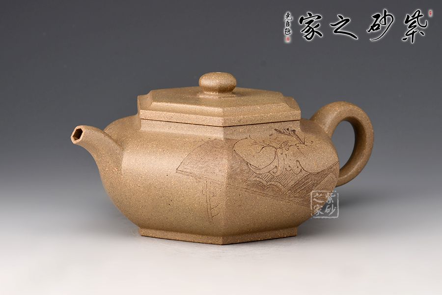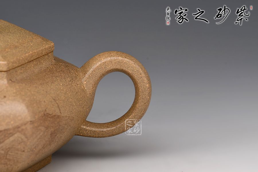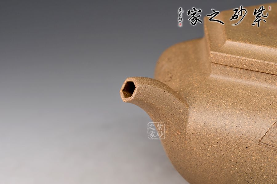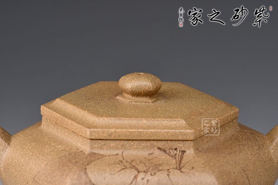 此壺作大彬六方壺式,是早期方器中的經(jīng)典款形,鈕、蓋、身皆呈六面貫通式,形體明快挺秀,棱角清晰,力度透徹,整器以直線、橫線為主,曲線、細(xì)線為輔,線條過渡自然爽凈。