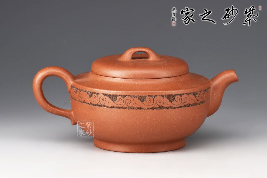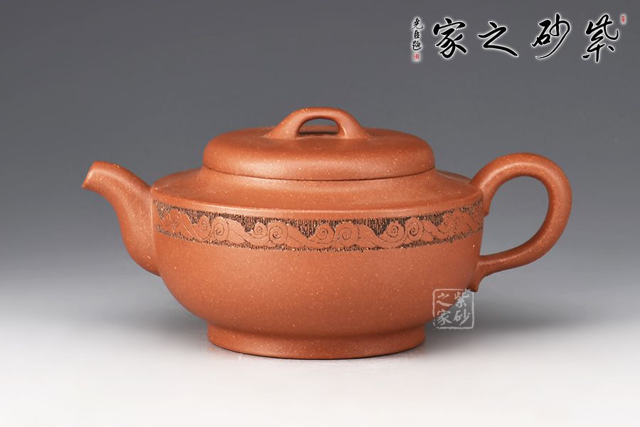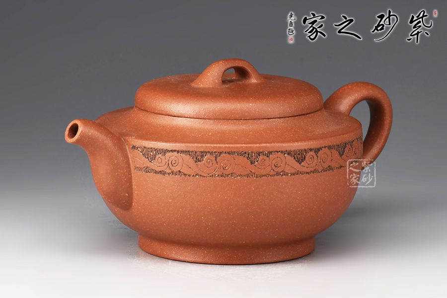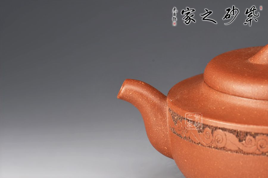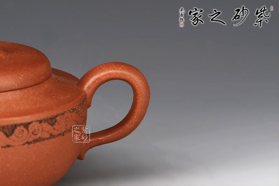 壺身裝飾的如意紋飾,為此壺增添了意味。降坡泥制作,更顯古樸韻味!