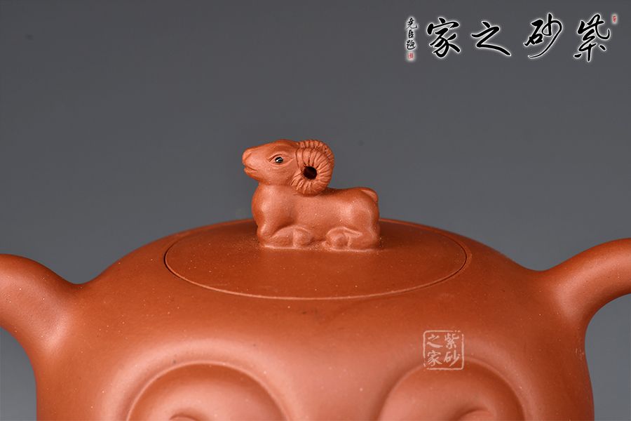 壺鈕為一只小羊造型,造型逼真,嵌蓋橋鈕。這件作品精益求精,展現出紫砂的獨特工藝美,不僅有吉祥之意,更有財源滾滾,招財進寶,可謂雙重瑞兆。