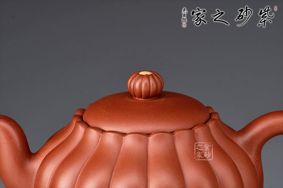 壺體造型仿自然界中菊蕾之形,筋紋瓣瓣分明,凹下去的紋路,凸顯出肌理的飽滿與瑩潤。嵌蓋嚴(yán)絲合縫,口、子口皆為花型,瓣瓣吻合;揭下壺蓋看內(nèi)里,囊瓣層層鋪疊、綻放,美極!