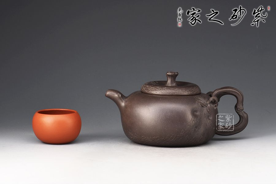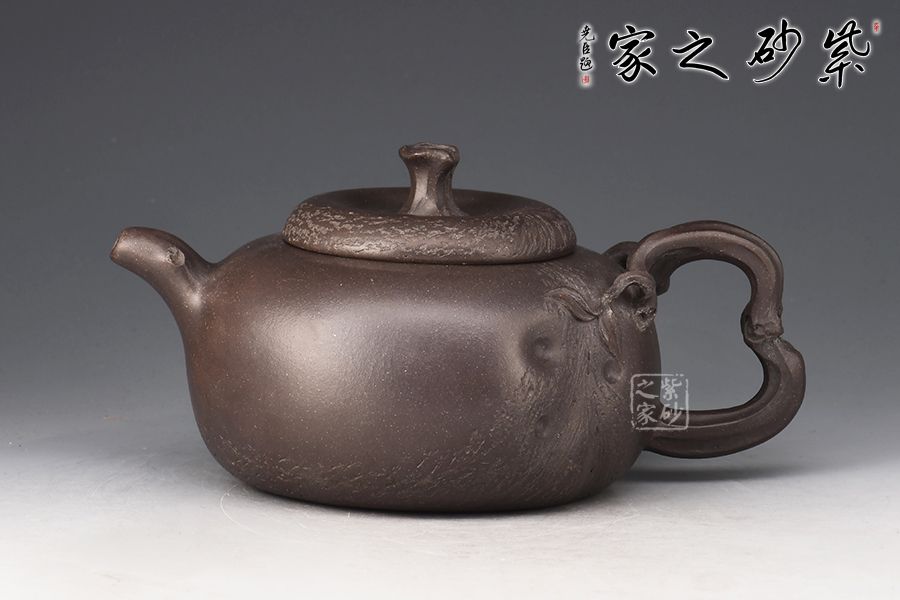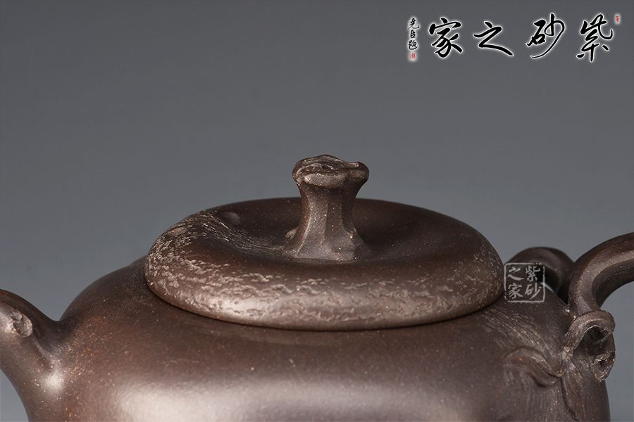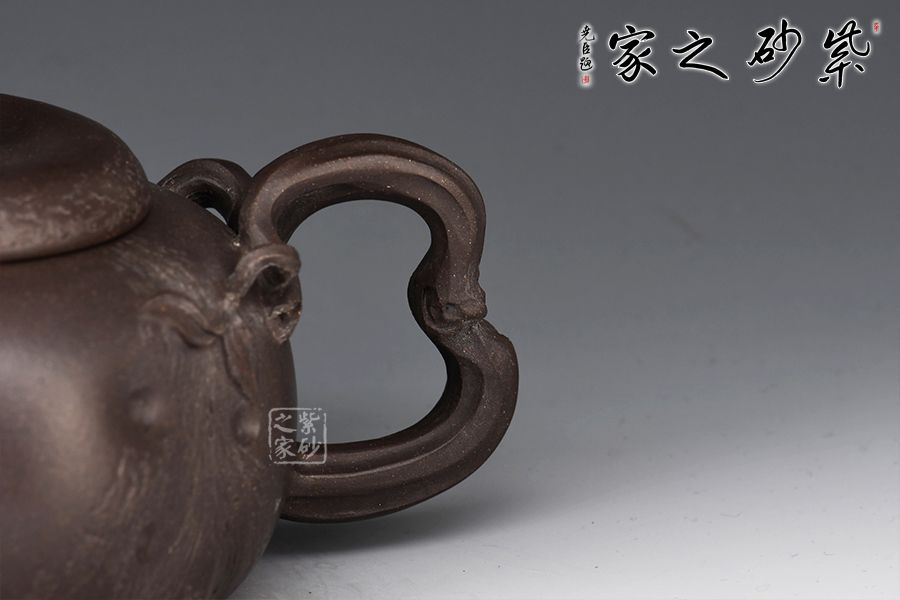 整器渾圓柔美,高雅光潤(rùn),品相極佳。壺色古樸厚重,嘴把鈕皆為枝干,壺把胥出一枝葉,壺蓋壺身有
