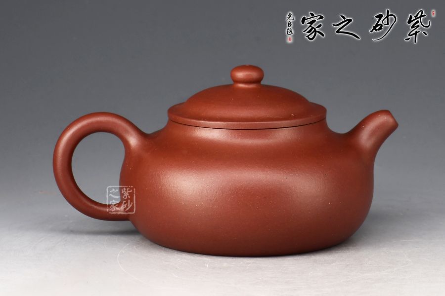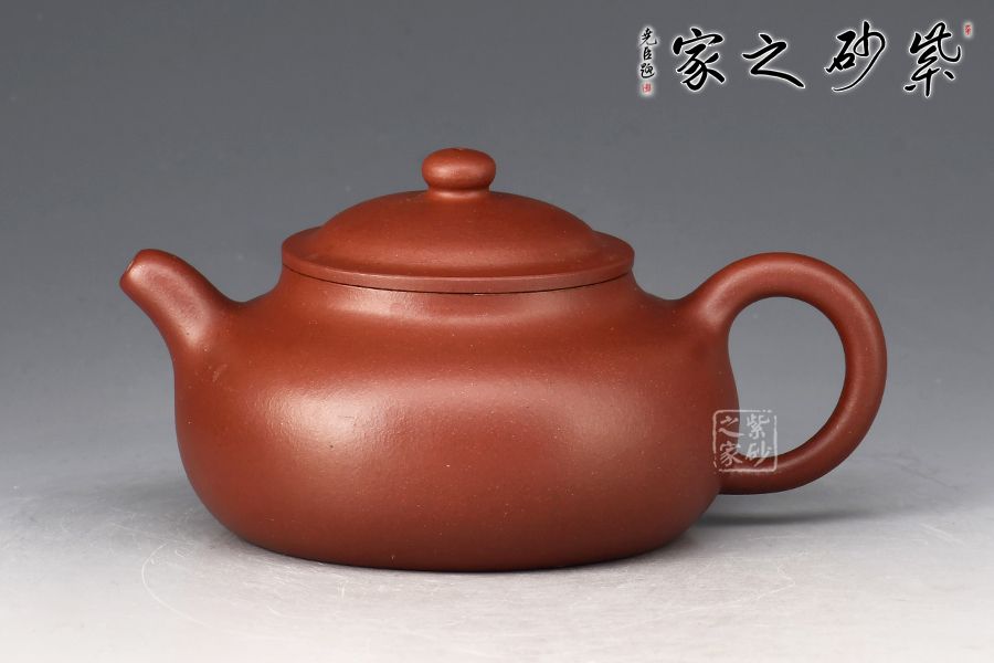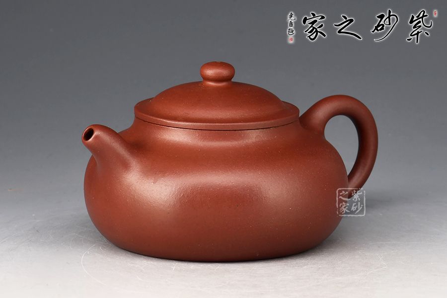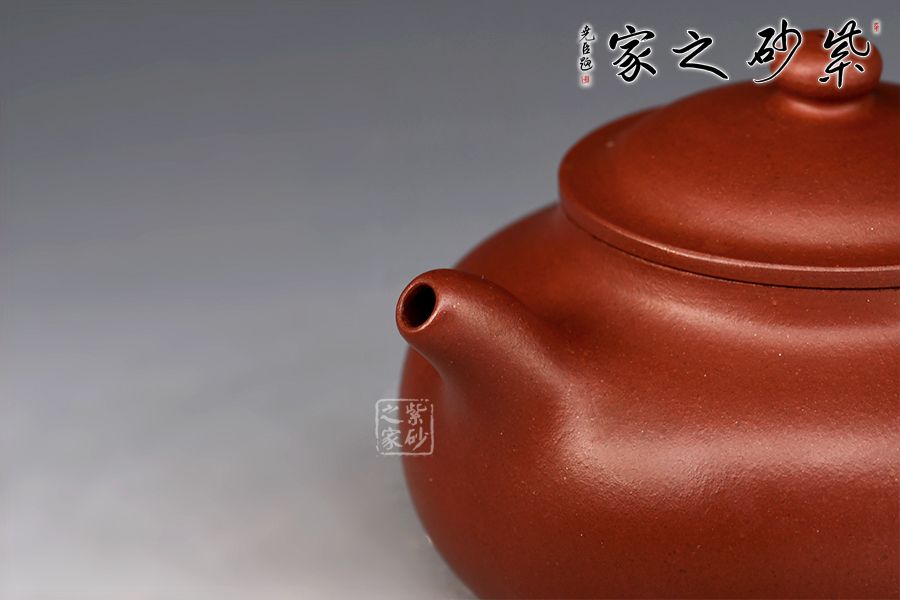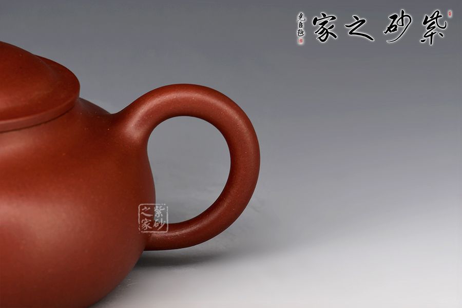 點、線、面之間,銜接嚴謹?shù)卯敚岷筒皇эL骨,一彎春水自有力度。壺身圓潤爽朗,矮而不塌,鼓腹矮梨之形。暗接一彎流出水集束,截蓋凸起,略有碗形,上飾扁珠鈕與壺身相襯,暗接壺把如環(huán),銜接壺肩,施力得當。平底穩(wěn)健,線條流暢和諧,銜接過渡自然。壺身素潔,不著一物,大道至簡,任何外物總顯得多余,靜置此處,不以外物得失而悲喜。