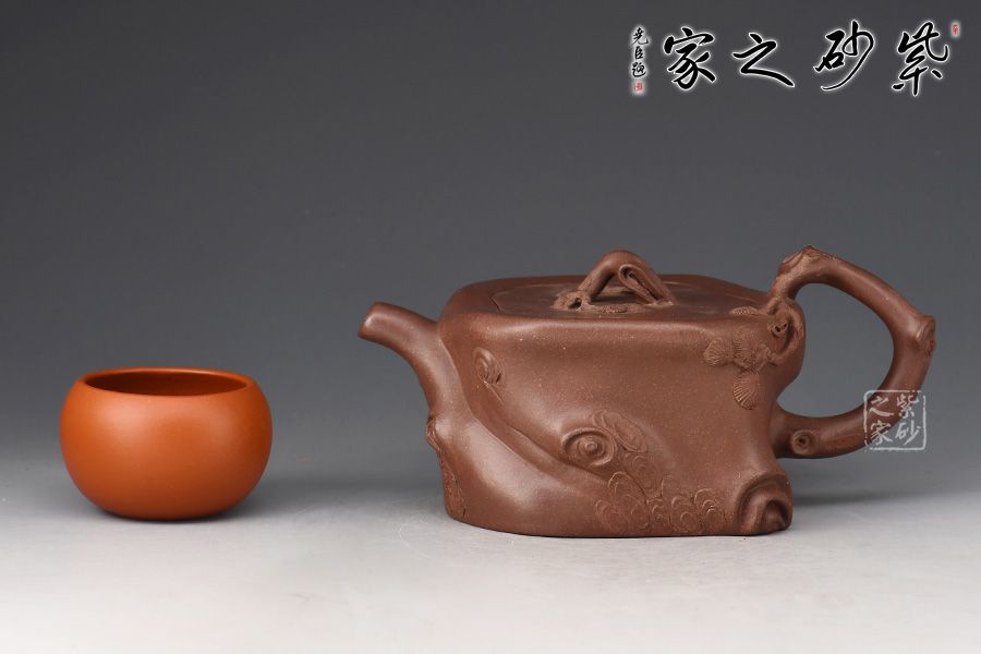 “松枝傲骨崢嶸,柏樹莊重肅穆,且四季長青,歷嚴冬而不衰”,松乃“歲寒三友”之一,代表堅強不屈,壺面樹皮的斑駁蒼勁,體現(xiàn)了生命的堅韌,松針的精細刻繪,體現(xiàn)了盎然的生機,作者寄情紫砂,以松入壺,用純粹的創(chuàng)作靈感造壺詠志,從精神層面來抒發(fā)自己對紫砂的理解,此壺氣勢古樸,集審美、藝術、實用、工藝于一體。