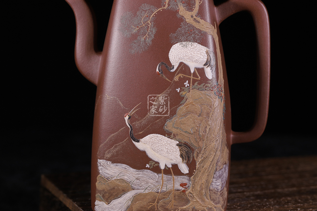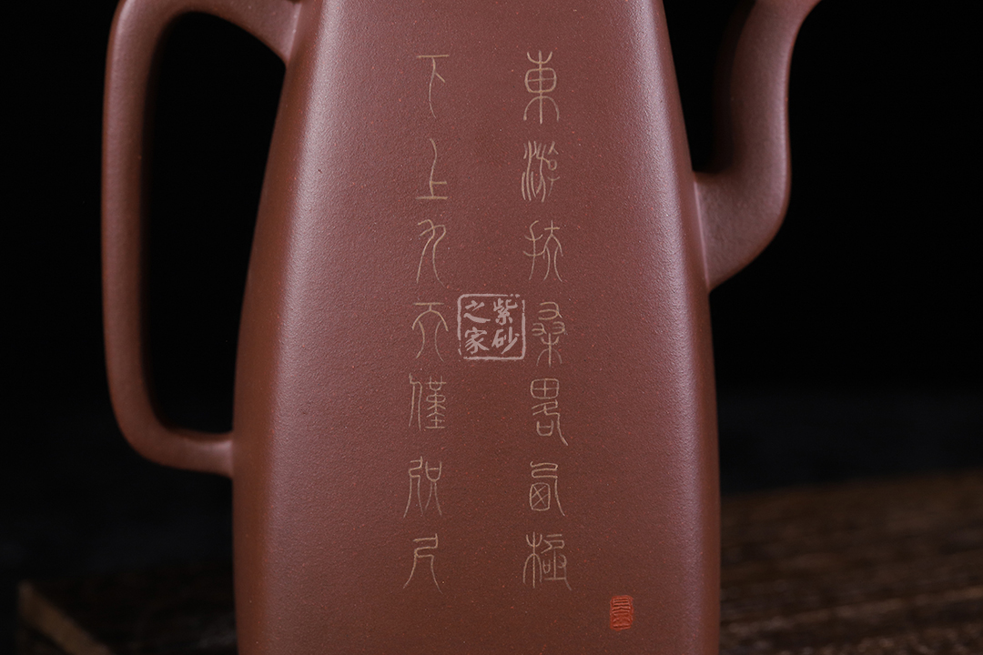作品繼承中華優(yōu)秀傳統(tǒng),以方器見長兼工圓器,造型典雅端莊,線條挺括,渾厚質(zhì)樸,于方正中見精神,樸雅中顯氣韻,力求精益求精,傳統(tǒng)與創(chuàng)新結合,相得益彰,互為輔助。