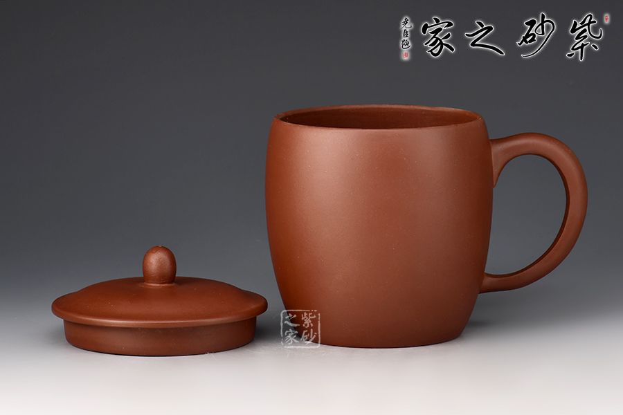 此款紫砂蓋杯簡潔大方,耳形圈把抓握特別舒適,珠形壺鈕拿捏方便,色澤典雅,做工精湛!