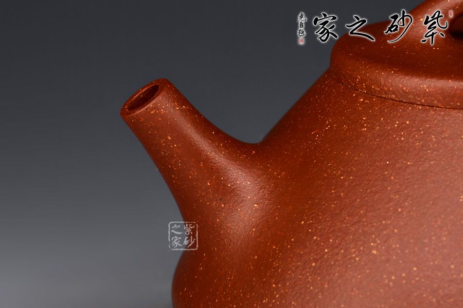 泥性:原礦因含緞泥、紅泥、紫泥等諸多共生礦,陶之后,于深沉之“橙紅色”底上,滿佈五彩斑斕的粗細、深淺之紅、黃星斑點。