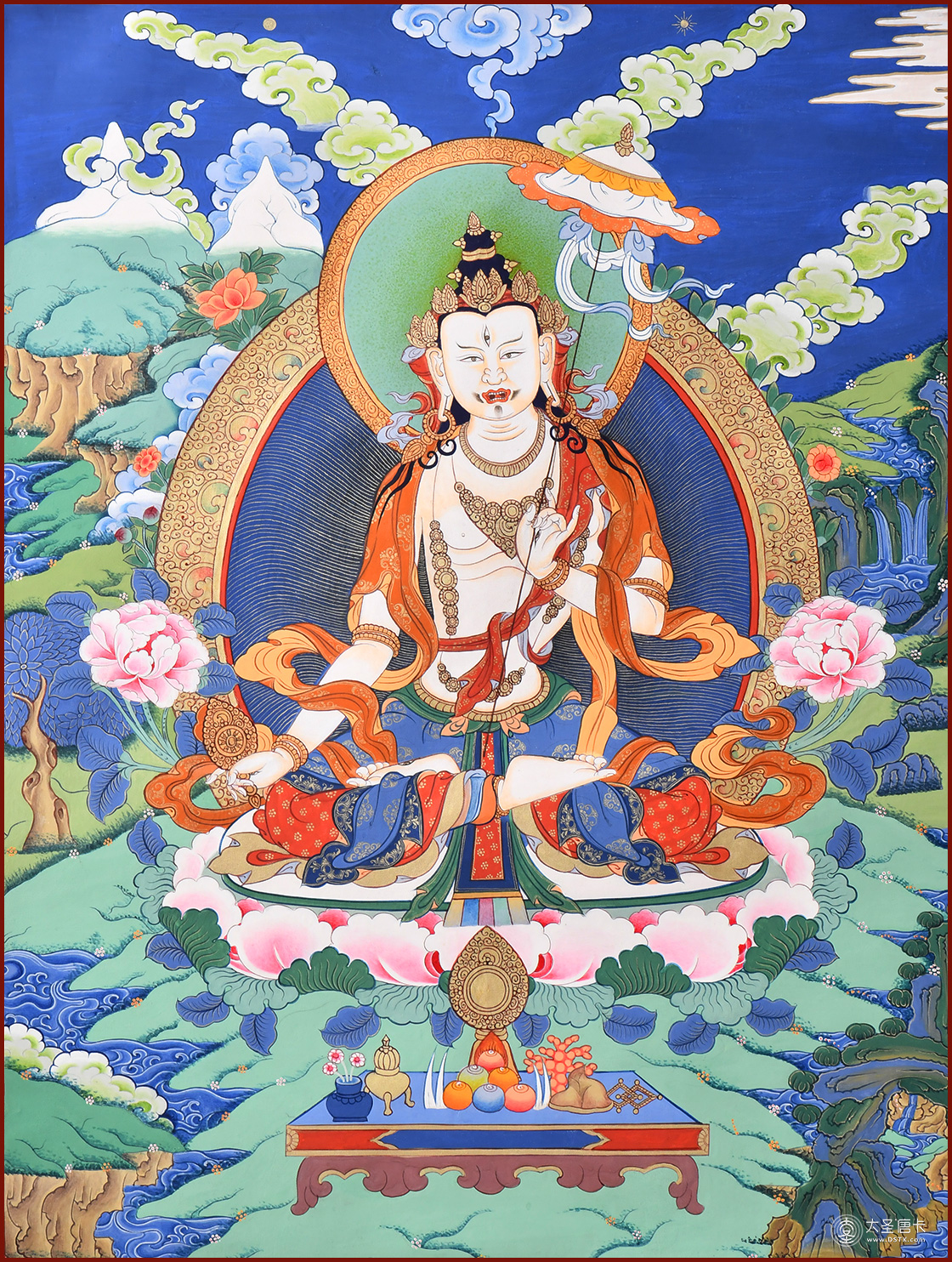 大白傘蓋佛母,藏文名叫“杜甘姆”,象雄文名叫“布扎阿甘”, 大白傘蓋佛母是諸佛事業的化身佛,其化相亦有多種,包括千手、十臂、六臂及二臂相的大白傘蓋佛母等。 大白傘蓋佛母屬于密宗的佛,是顯密合壁的化身佛,三世如來的佛母,扭轉一切逆緣障礙的金剛本尊,降伏妖魔的賢神,大白傘蓋經典是一切密咒的精華。