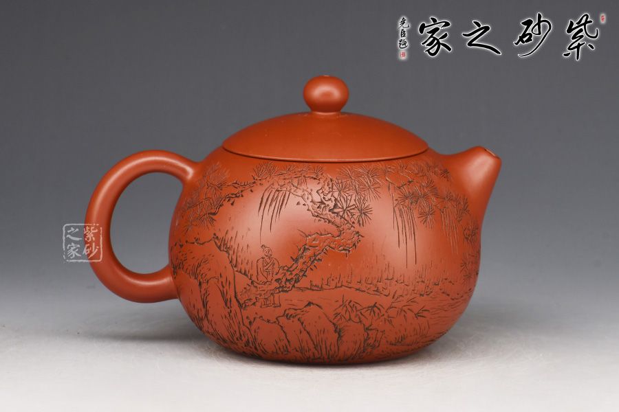 特點(diǎn):質(zhì)感綿密、緊實(shí)細(xì)緻,持之扎實(shí)沉重、紅潤(rùn)豔麗,泥中極品,無(wú)以倫比;泥胚含少許原礦顆粒,沖淋熱水后色變極大,呈紅中帶紫,養(yǎng)壺易現(xiàn)“包漿”之美。