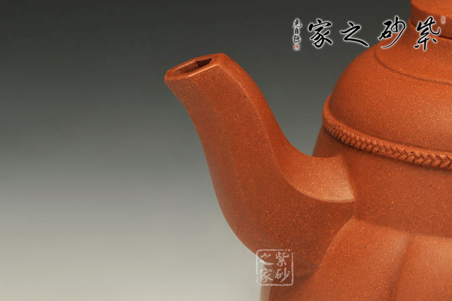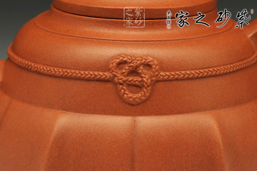 特點:原礦因含緞泥、紅泥、紫泥等諸多共生礦,陶之后,于深沉之“橙紅色”底上,滿佈五彩斑斕的粗細(xì)、深淺之紅、黃星斑點。