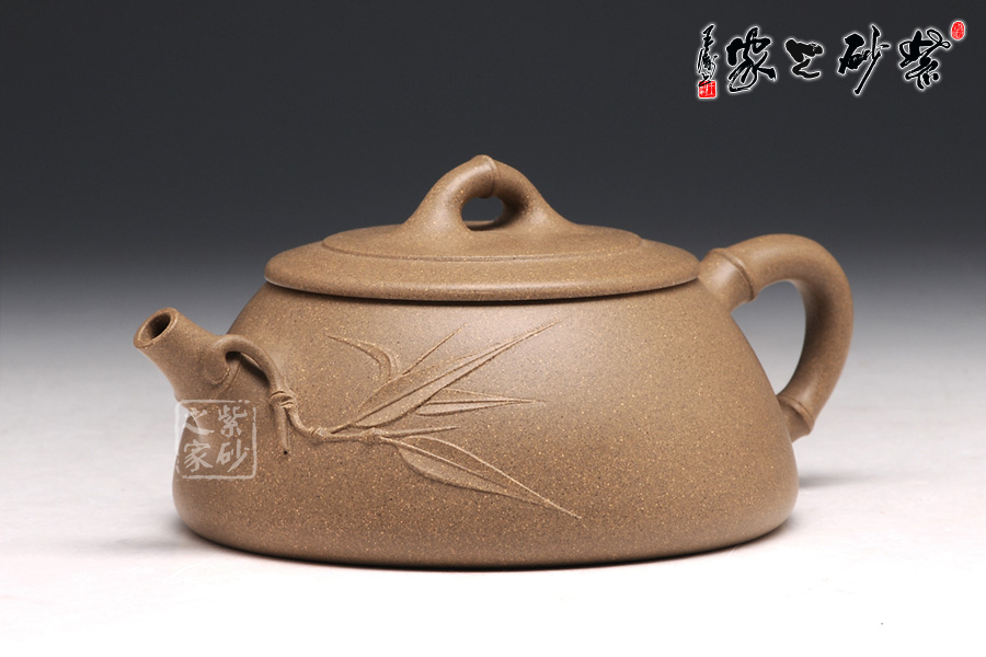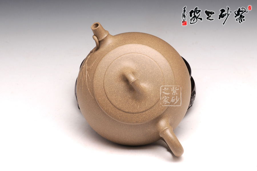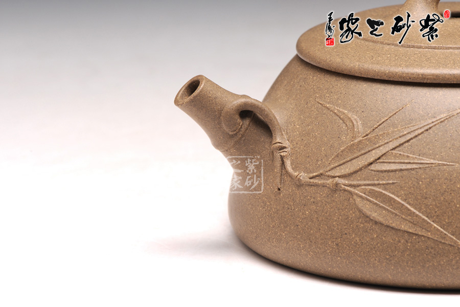 這把壺將壺鈕、壺把、壺嘴以竹節(jié)裝飾,另有一枝嫩竹從壺嘴及壺鈕上伸出,一種造型的視覺動(dòng)感和立體美感呈現(xiàn)于眼前,別出心裁,匠心獨(dú)具。