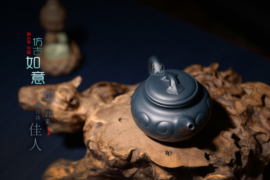 仿古如意是經(jīng)典器型,這款仿古如意形制典雅,適中的容量凸顯傳統(tǒng)造型的氣魄,精選墨綠泥制作而成,色澤艷麗美妙,與老壺型相搭配起來格外大氣;此款作品壺把和壺嘴線形流暢,與壺身暗接相連,壺蓋有拱橋式襯托,且設(shè)計(jì)成如意造型,與主題呼應(yīng),另外壺身有特別的如意花紋,形成了一種特殊的風(fēng)格,此壺最早出現(xiàn)于明朝,實(shí)乃不朽之作。