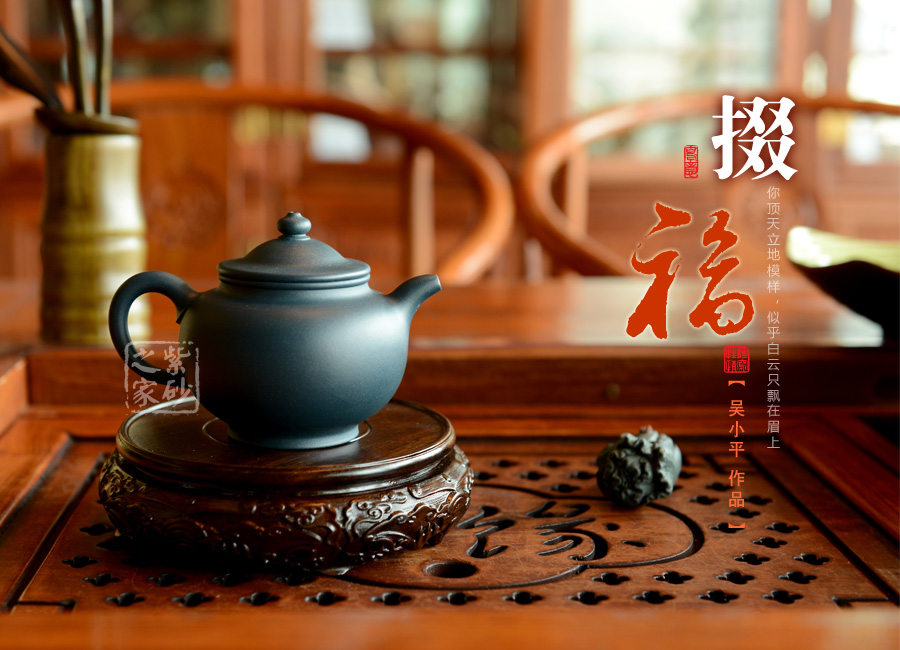 此款掇福源自掇只,造型圓潤(rùn),美觀動(dòng)人。精選原礦墨綠泥制成,色澤鮮艷,韻味獨(dú)到。該壺有著渾圓的壺身,半圓的壺蓋,珠鈕為兩球疊加,線條流暢,比例得當(dāng),壓蓋略微渾厚,點(diǎn)線之間見(jiàn)出魅力,子母線口蓋溫和嚴(yán)密,骨肉亭勻,簡(jiǎn)練大方,制作頗見(jiàn)功力。彎流嘴胥出,在端頭下壓,柔美之姿明顯,壺柄略微上抬之后優(yōu)雅滑落而下,形成一條圓潤(rùn)飽滿的弧線,樸雅大方。