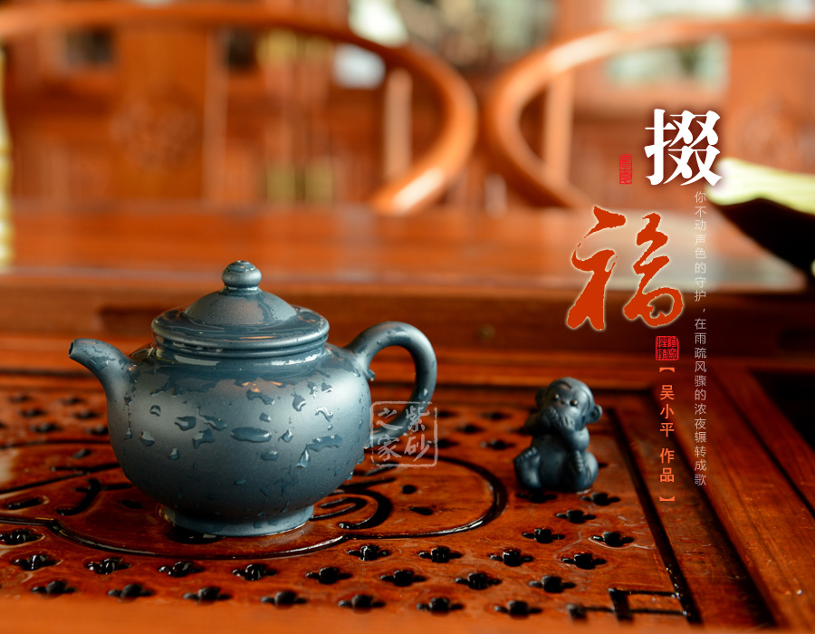 特點(diǎn):泥色特異,青藍(lán)色中略泛綠光,清秀獨(dú)特;稍一泡養(yǎng),色調(diào)更形穩(wěn)實(shí),溫潤(rùn)透明,變化甚巨,玩賞深具成就感。
