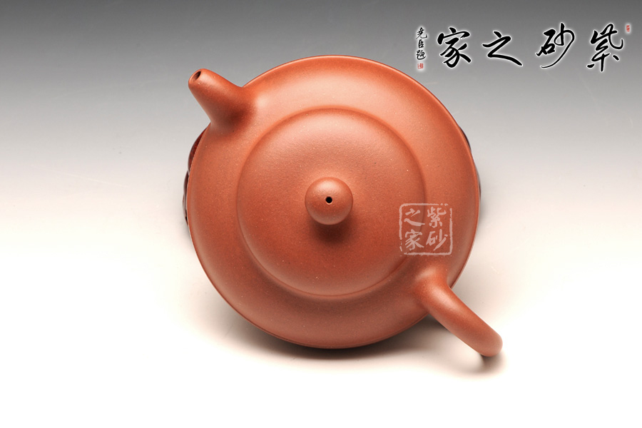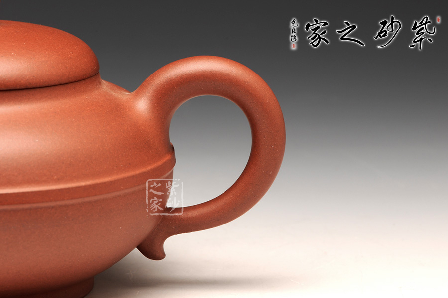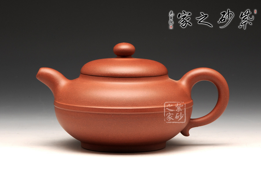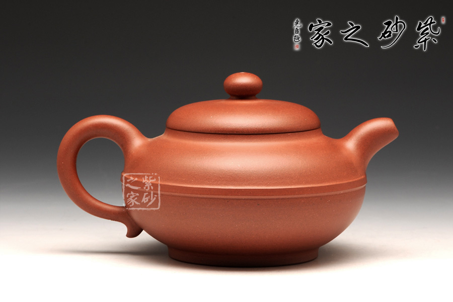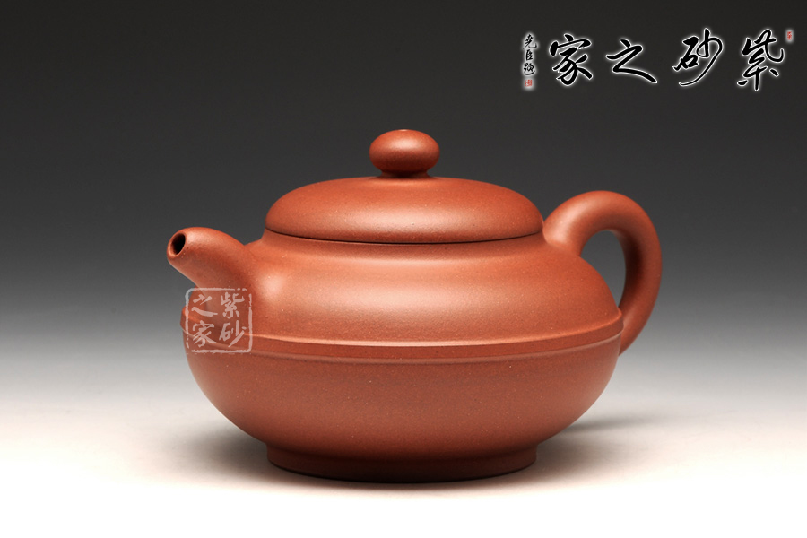 線圓為晚清民國(guó)經(jīng)典壺式之一,壺身用兩泥片合成扁球狀,口部與半球狀蓋相切,壺底簡(jiǎn)潔,為一捺底,橋梁鈕與蓋渾然一體,整個(gè)壺在扁圓中富于韻味;壺流自壺腹胥伸自然,把高挑圓潤(rùn)下留垂耳,與流對(duì)應(yīng)稱勢(shì);中置一腰帶線將全壺提攜神韻,腰線 帶方、角圓,變化中求統(tǒng)一,以求完美。