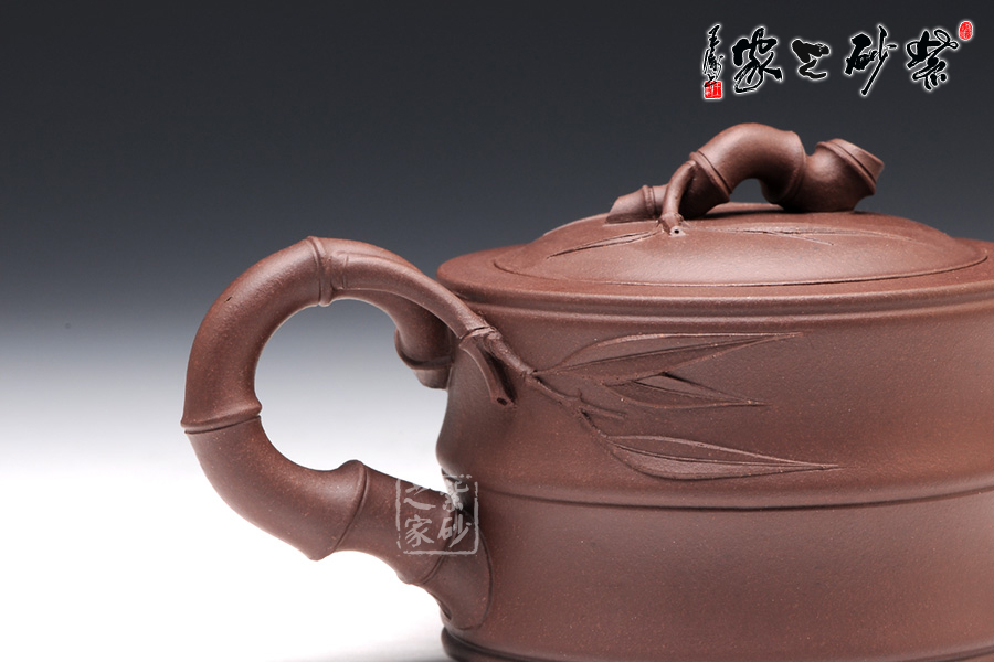“一品竹段”穩穩的壺身中,可感覺到竹的靈氣,彎曲的竹枝為滴手和壺把,曲卷翻動的勢與度恰到火候;創作此壺決不是延習古作,簡單模仿,而力盡在適度的變形中,在思想和情感的融合中,在品位和格調的提煉中,源于生活,高于生活;做到飄逸灑脫,高風亮節;由此,品格與藝術得到升華;一品竹段、高風亮節的人生,又何嘗不是如此呢,給人以無限遐想的空間和無法忘懷的魅力。