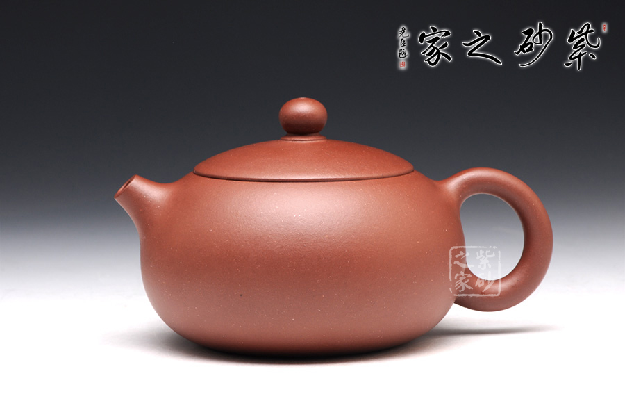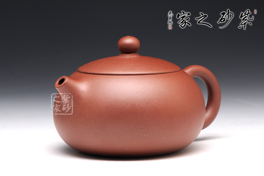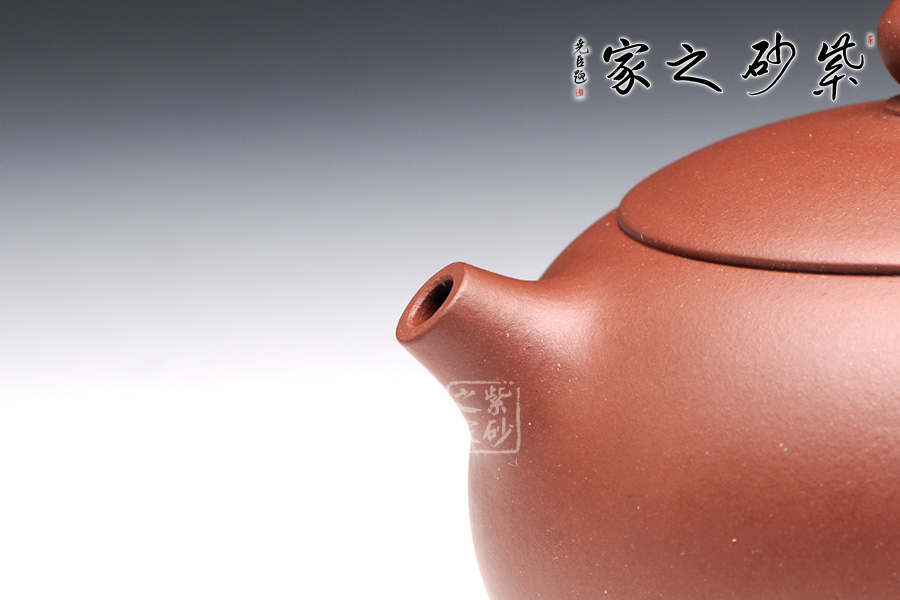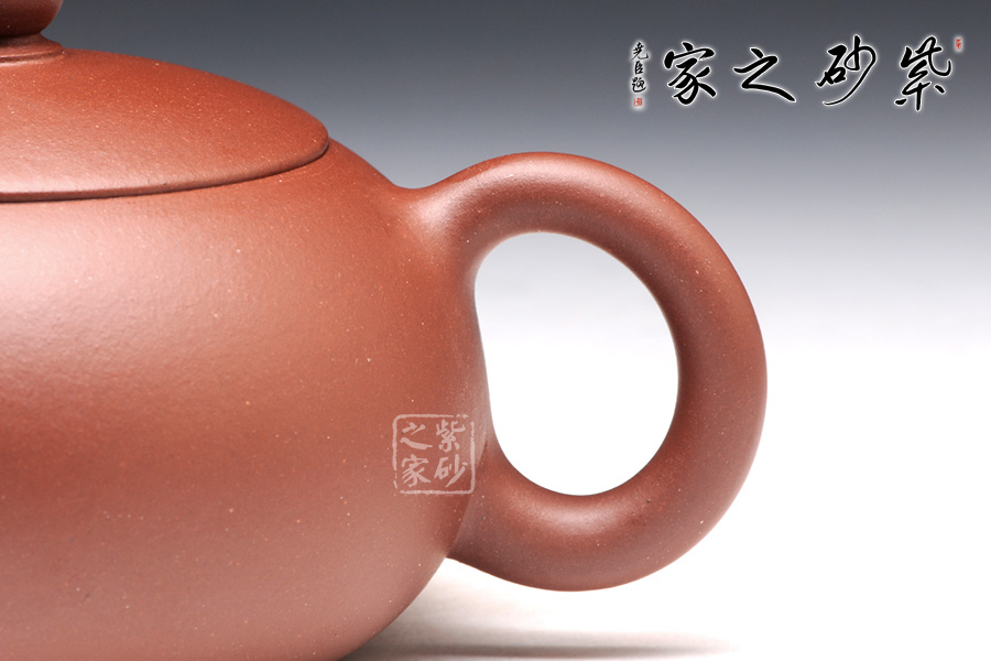 言壺之形若美女西施之豐乳,飽滿挺立,流短而略粗,把為倒耳之形,蓋采用截蓋式,壺底近底處內(nèi)收,一捺底收尾。