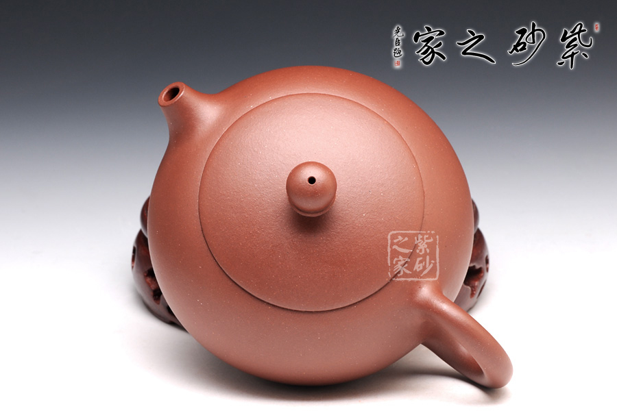光貨素顏,整個壺體豐潤飽滿,如同女子鼓脹乳房,短嘴翹起,俏意十足。倒把壺柄,上細下粗,如同女子慵懶的發(fā)髻松松垂下,閑適自得之情躍然而出。寶珠形壺鈕嬌小圓滿,整個壺體嬌小玲瓏,非常可愛,甚是惹人喜愛!