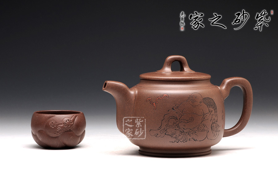 莊青(玉陶),國(guó)家級(jí)工藝美術(shù)師、莊子后裔。1971年9月出生于陶都宜興,自糼愛(ài)好美術(shù),1996年開(kāi)始鉆研紫砂陶刻及制壺的工藝。因其擁有很好的工筆人物畫功底,后又受到鮑志強(qiáng)和徐安碧二位大師的精心指點(diǎn),很快成為陶都新一代知名制壺及陶刻藝人。