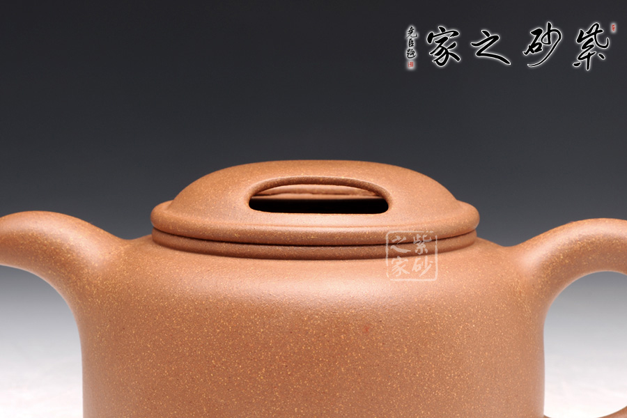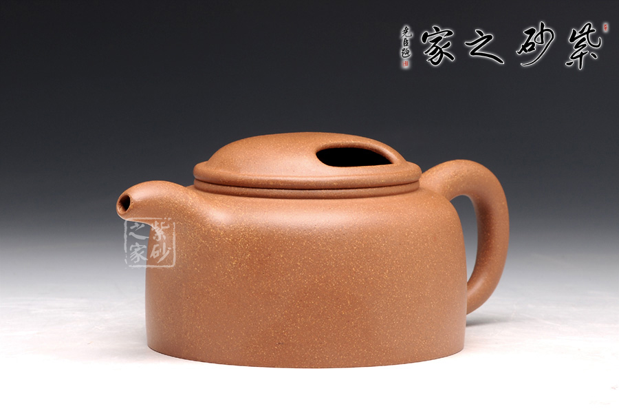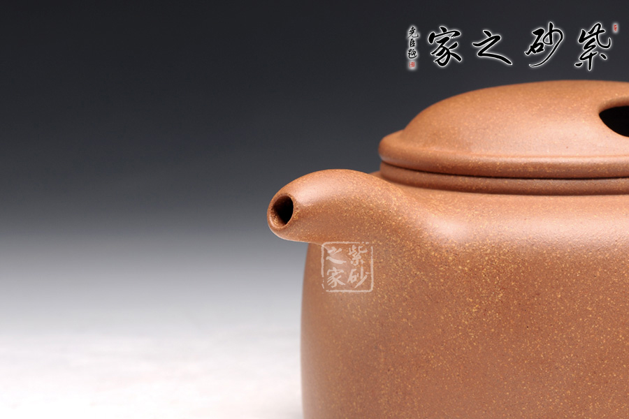 此壺工藝精湛,線條挺括,精、氣、神俱佳;壺身呈圓柱筒狀,其將生硬的加工的線條感覺演變?yōu)榍€;短頸,寬口,肩部收斂成口,外包口沿;短嘴,一彎流,出水流暢;壺柄耳大圓潤(rùn),呈方形;壺蓋做的很精致,壓蓋,與壺口緊密結(jié)合,口蓋整體平整光滑,外形流暢;壺鈕制作別出心裁,采用了牛鼻孔式的鏤空結(jié)構(gòu),生動(dòng)與趣味完美結(jié)合。