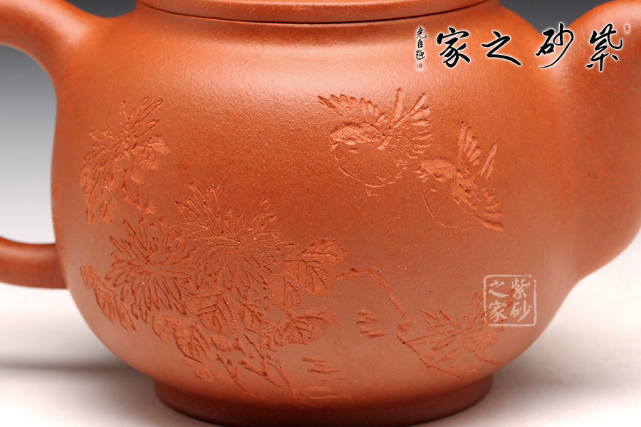 泥性:原礦因含緞泥、紅泥、紫泥等諸多共生礦,陶之后,于深沉之“橙紅色”底上,滿佈五彩斑斕的粗細(xì)、深淺之紅、黃星斑點(diǎn)。