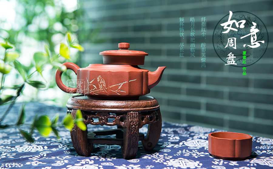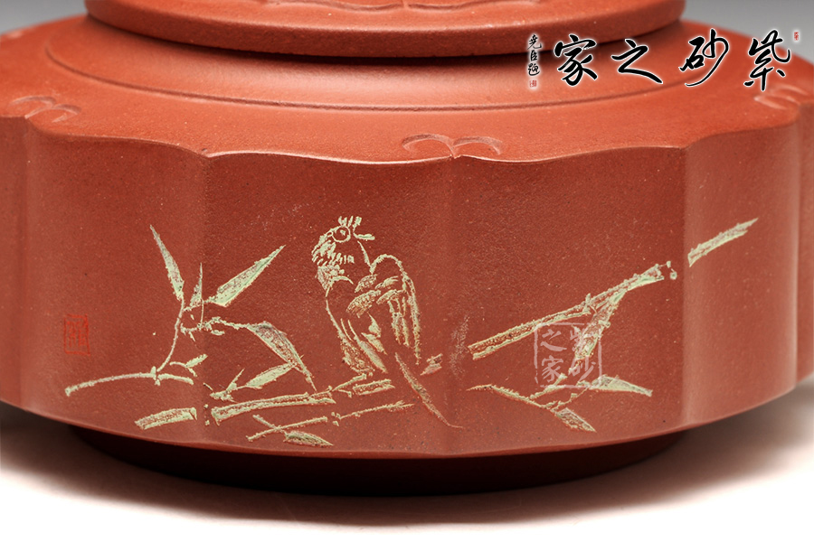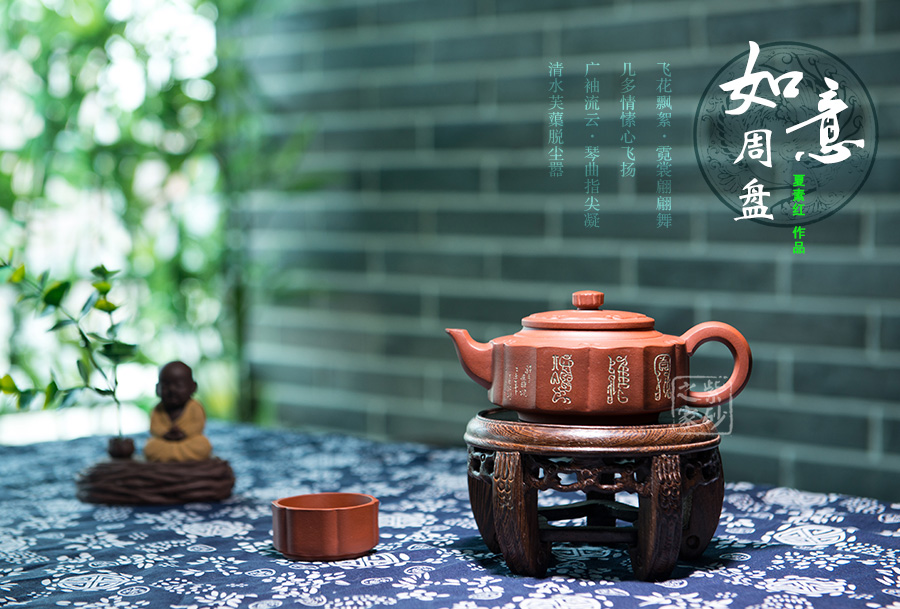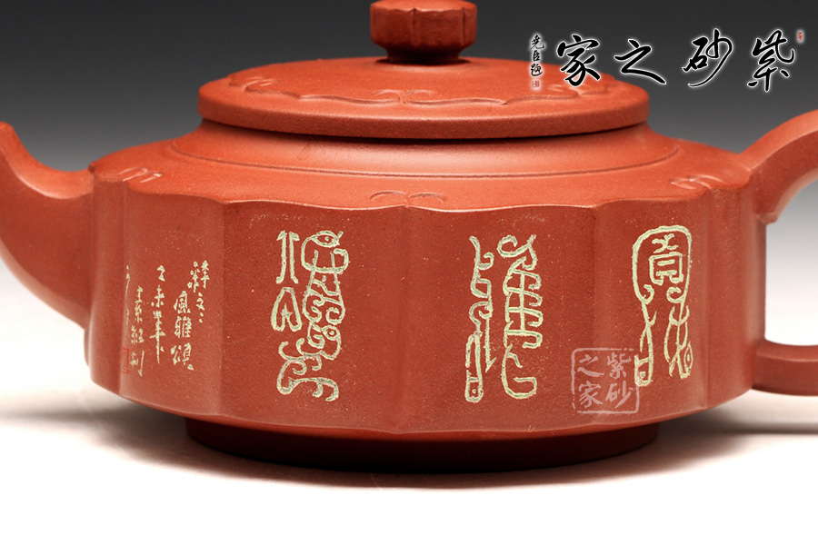 多年的學習積累,裝飾風格自成體系,創作了系列化裝飾作品,成為全方面將中國文字學和傳統文化融于紫砂藝術的第一人。相較于紫砂藝術中常用文字,夏素紅老師所用文字裝飾效果更有唯一性和獨特性。中國稀有、失傳文字學的使用彰顯其作品有強烈的個人風格,亦是復古風的代表性佳器。