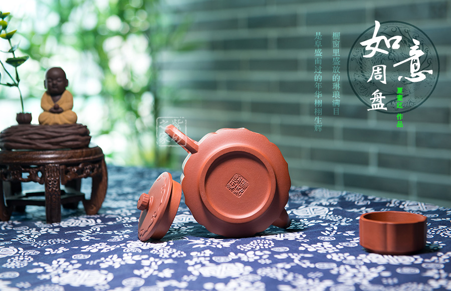如意周盤是在周盤的基礎之上創作而來,由上俯視,如意之態盡顯。此款壺制作審慎,工精藝謹。壺蓋到壺身,每一處轉折線角明確清晰,筋囊工整勻稱,相互間又一氣貫通,流、把上的陰線流利明快,形成橫向銜接,與壺身的直向性既對稱,又有變化之妙,真叫一個美哉!