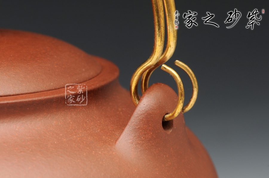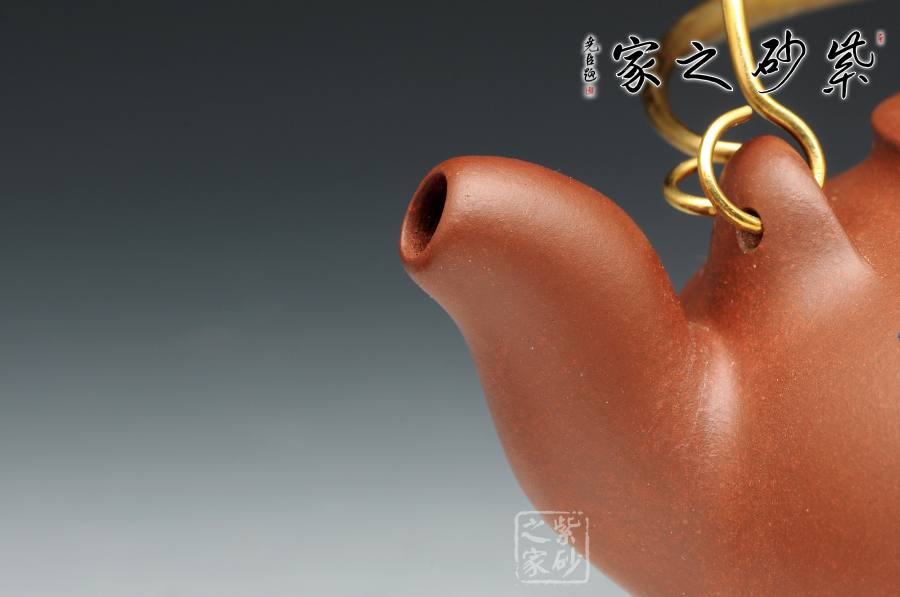此壺,采用原礦清水泥制成,柔嫩細(xì)膩,色澤潤(rùn)滑,雅韻無(wú)窮。壺身簡(jiǎn)練厚實(shí)飽滿。整體設(shè)計(jì)巧妙,在傳統(tǒng)壺型的基礎(chǔ)上,構(gòu)思匠心獨(dú)運(yùn),打破了提把和壺身皆為泥料制作的習(xí)慣。金屬性的提梁,展現(xiàn)了古今藝術(shù)相結(jié)合的創(chuàng)作理念,同時(shí),金屬提把與壺本身的顏色形成鮮明的對(duì)比,極具視覺觀賞價(jià)值。