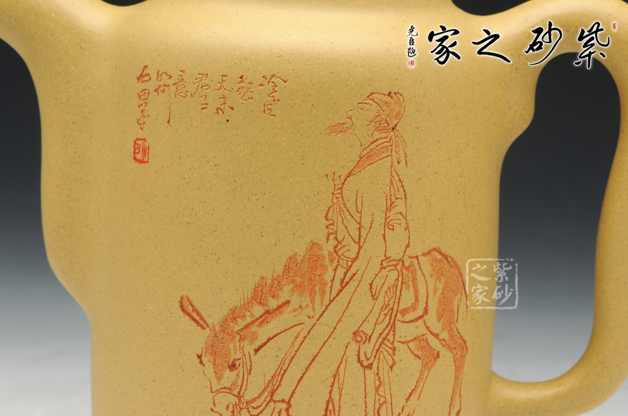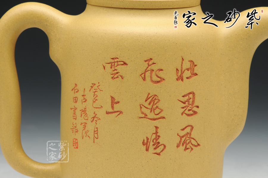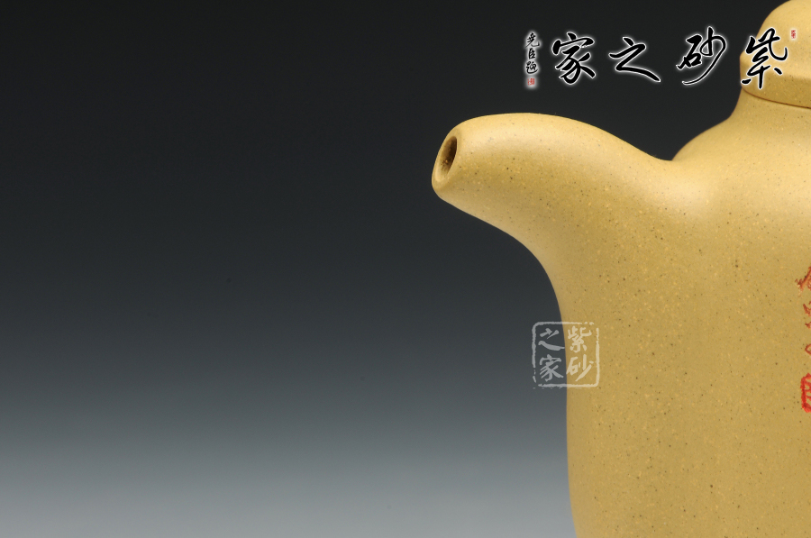 泥性:感甜嫩綿密,質(zhì)堅(jiān)而溫潤,呈近田黃色調(diào),為江蘇宜興趙莊山系朱泥礦~黃石黃之共生礦,經(jīng)挑揀練製而成,因含鐵量只達(dá)6%左右,致陶之后呈“金田黃色”。