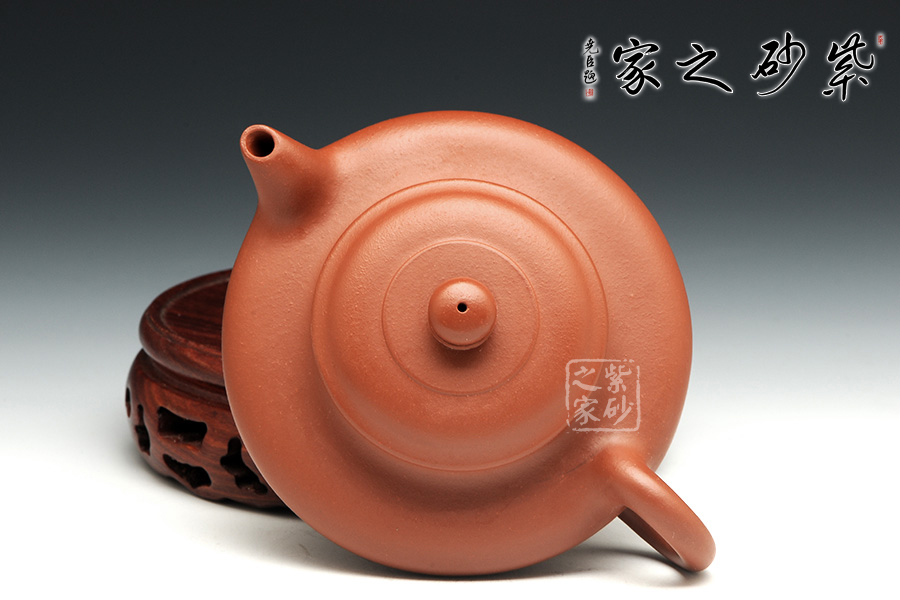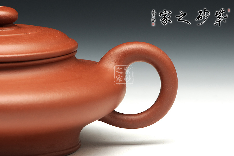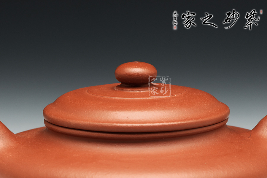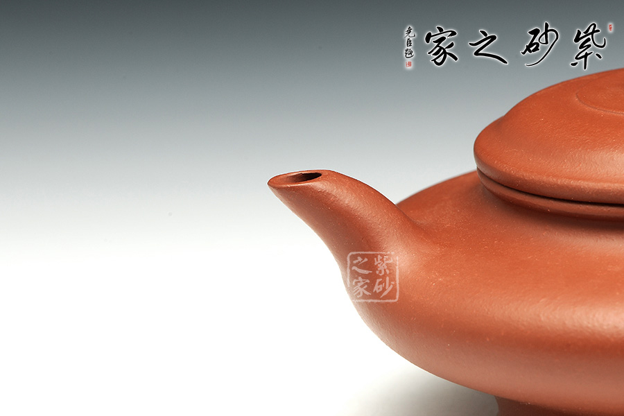所謂“器型扁一分,造型難一分”這是紫砂行業的一句行話,眾多器型當中當屬虛扁造型最獨特,極難成形,老師的此款虛扁壺卻不得不讓人佩服,原礦紅泥泥料襯托出作品典雅而古樸,嘴頭處理干脆利落,略微下沉,蓋微鼓,素面典雅。此為經典而簡單的虛扁式樣,實用而雅致,細節精細,大處舒展,實為賞心悅目的好壺。