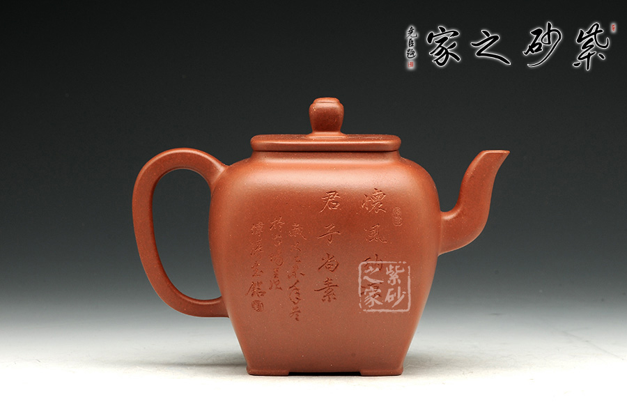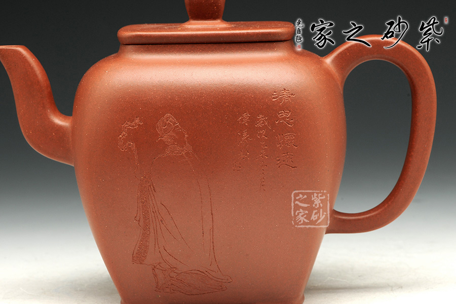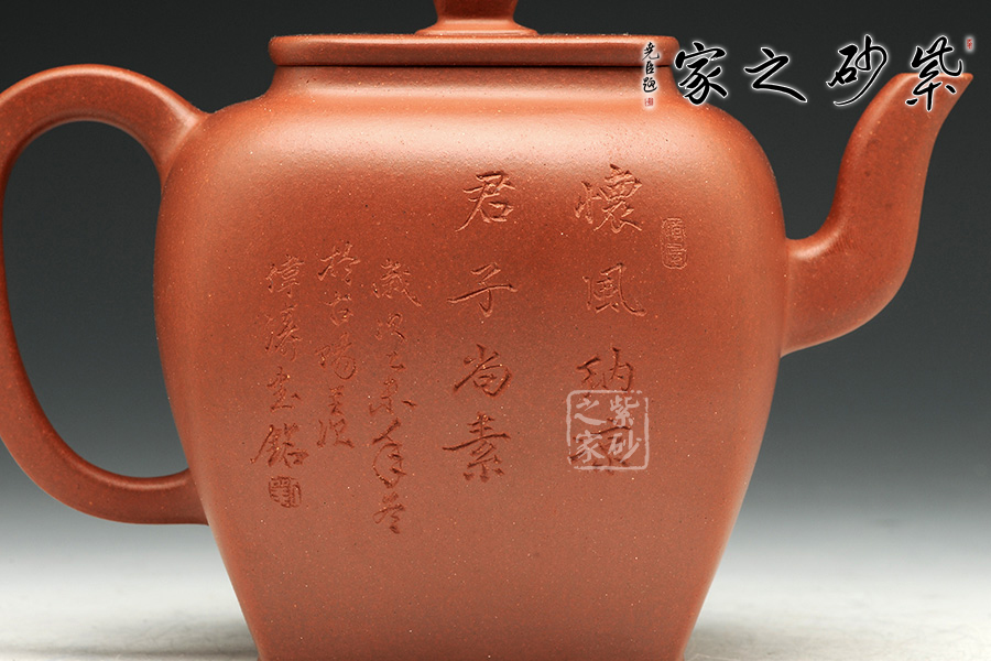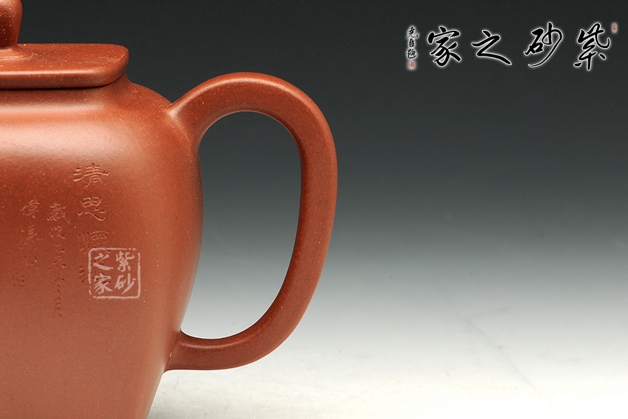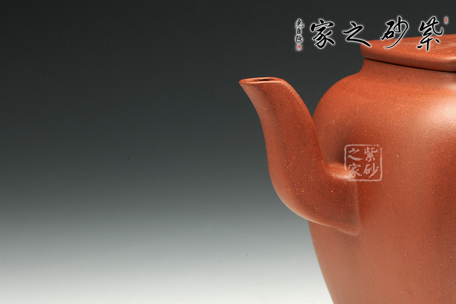 此壺造型簡練,壺身細(xì)膩秀雅,用簡潔的形態(tài)來表達(dá)此壺自身的生命力,壺嘴、壺把與壺蓋和諧統(tǒng)一,使得壺體各部分有優(yōu)美比例,表現(xiàn)出精湛的制作技巧和優(yōu)良的實(shí)用功能。底足設(shè)計(jì)使得此壺更加有視覺效果,立體感更強(qiáng)。觀之整器,表現(xiàn)出藝人的基本功力和文學(xué)素養(yǎng)!