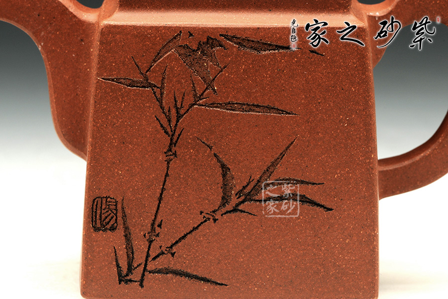 A面: 裝飾: 景物 裝飾者:湯鳴皋 裝飾內(nèi)容: 刻繪竹葉清雅,節(jié)節(jié)高升,顯君子之氣