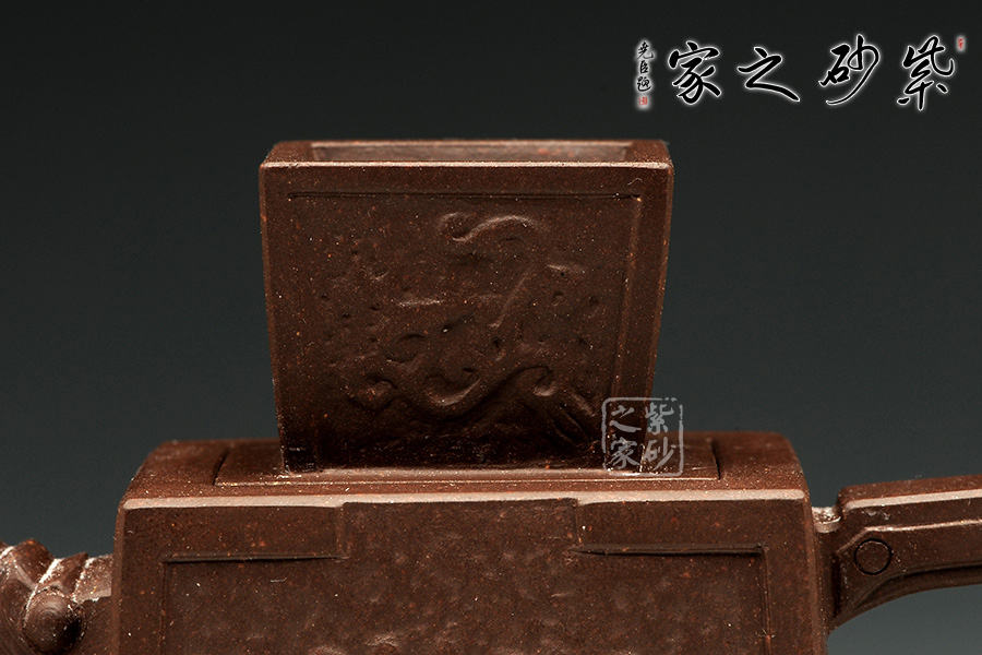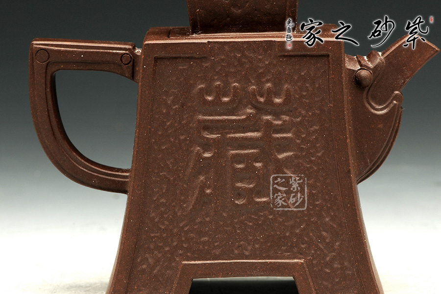 此款古幣壺,可謂獨具匠心,造型參考古代錢幣、銅器制作,線條果敢沉穩(wěn),以四方形為主,壺身直挺延伸,續(xù)出四足,烘托整體,可謂內斂。壺口龍嘴,典雅貴氣,制作精細傳神,與之襯托的壺把,外平內潤,線條勾勒勻亭。同時,壺蓋與壺鈕為一體,好似古代官帽,四方正直,頗具濃郁的歷史氣息。加之,壺身整體的暗紋裝飾,“藏”字韻意,極具價值,是把值得收藏的佳品,推薦!