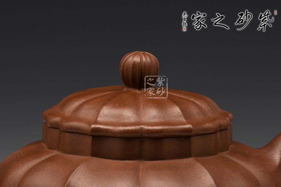 壺蓋與之應(yīng)和,呈菱花造型,口蓋較大,實用性佳。