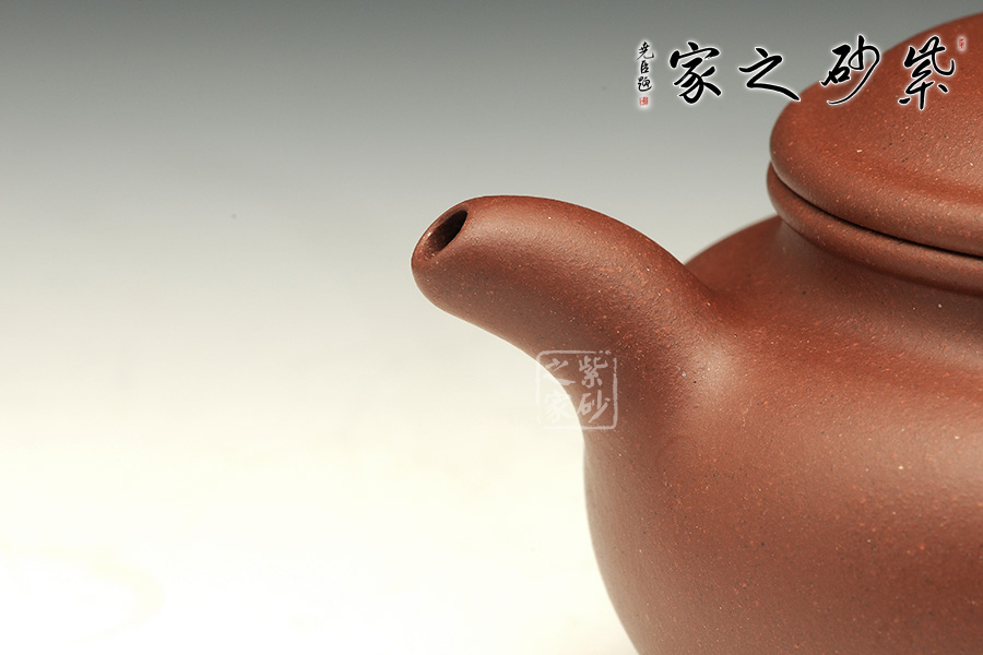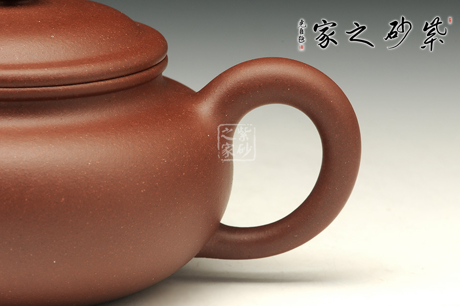 壺身略微扁圓形,平肩襯托之下更覺壺身扁平,端莊若大家閨秀。圓潤的的子與壺身一致,應(yīng)和之下韻味十足。口蓋子母線精確地將壺蓋、壺口分割開來。大口蓋,大氣十足。與傳統(tǒng)壺型毫無二致,一變嘴,耳形壺把隨身勢。線條流暢,比例得當(dāng)。在外撇的壺嘴與闊闊的耳形壺把的襯托下,整款壺力蘊(yùn)十足,仿若氣沉丹田,亟待蓬勃而出。