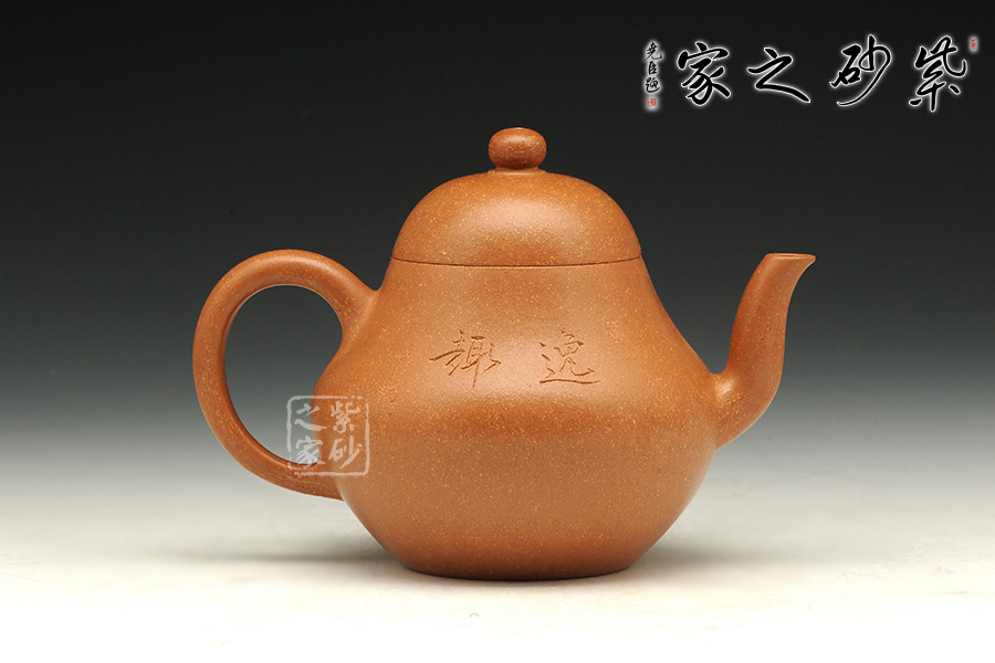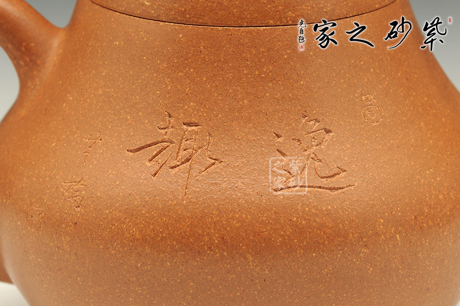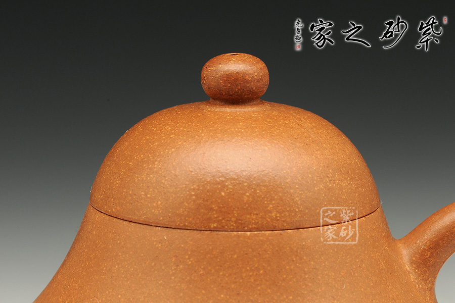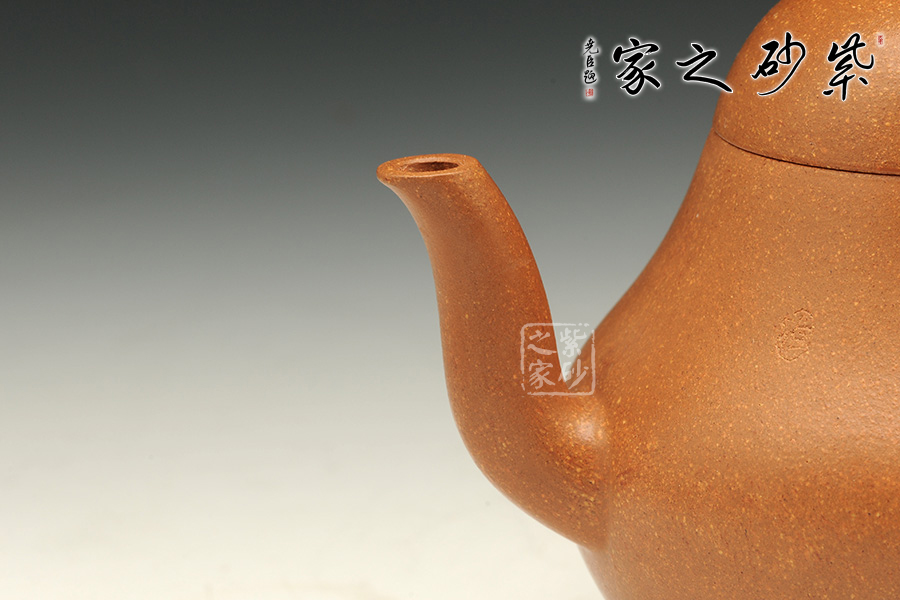 卵圓形的壺鈕挺立在鼓蓋之上,嬌小可愛。彎流挺出,與壺身形成優(yōu)美的夾角,大耳形壺柄同樣外延,甚是可愛。流、把、口切線平衡,做工嚴謹。壺腹微鼓,壺底收斂,整個壺體圓潤飽滿,端莊雅致。壺蓋與器身渾為一體,整器造工精確,梨式造型,樸素清雅,用以泡茶品茗,尤為茶人所喜愛。