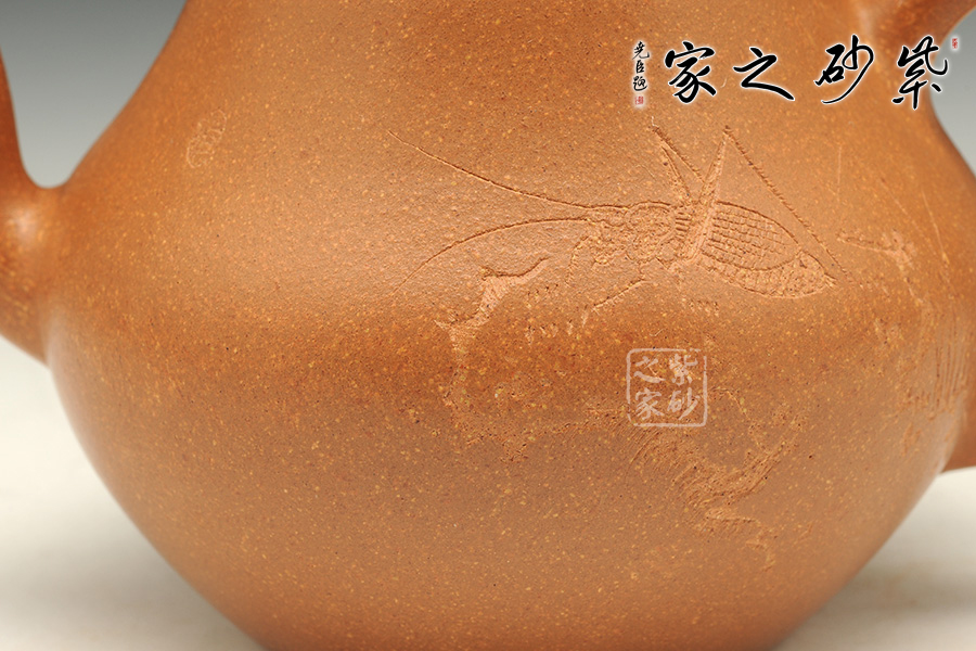 泥性:原礦因含緞泥、紅泥、紫泥等諸多共生礦,陶之后,于深沉之“橙紅色”底上,滿佈五彩斑斕的粗細、深淺之紅、黃星斑點。