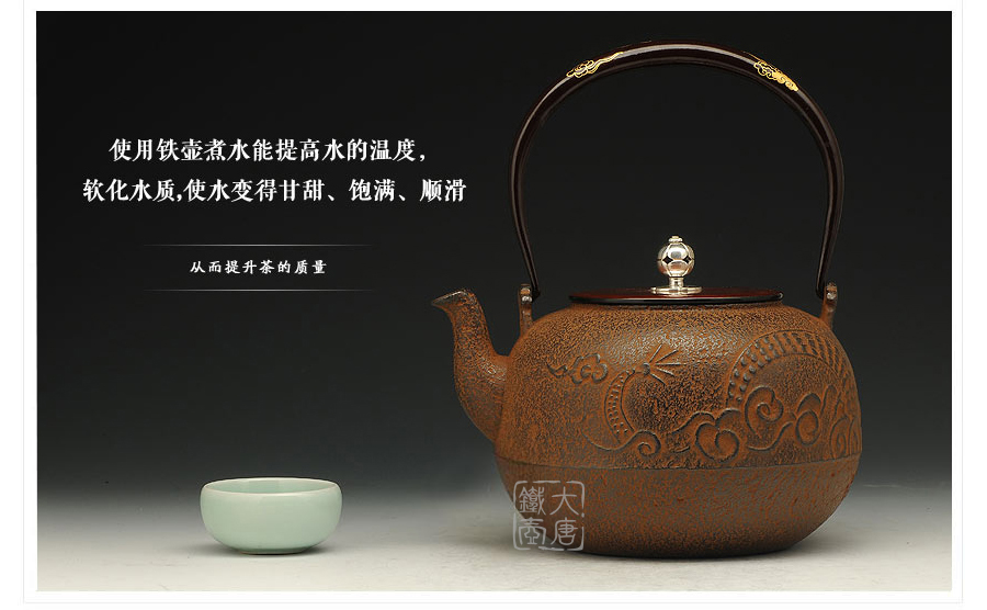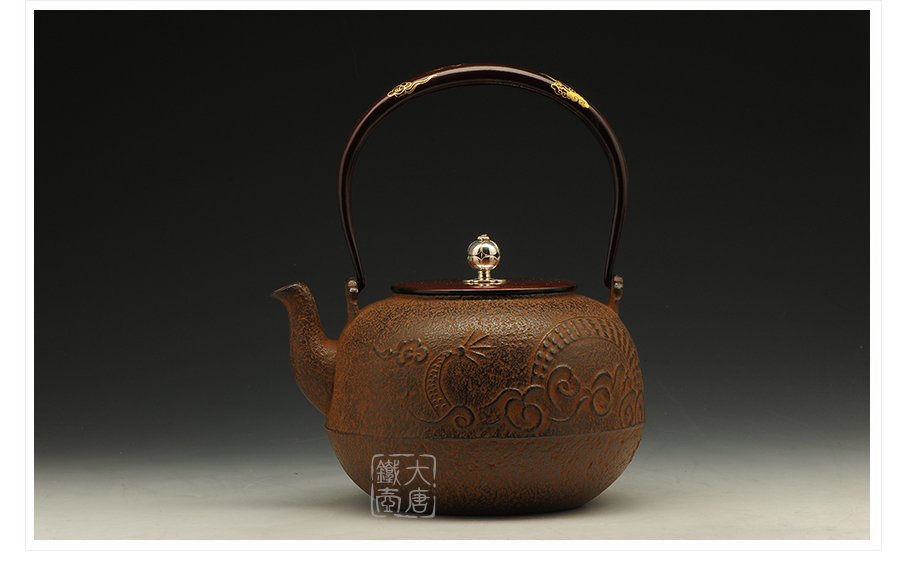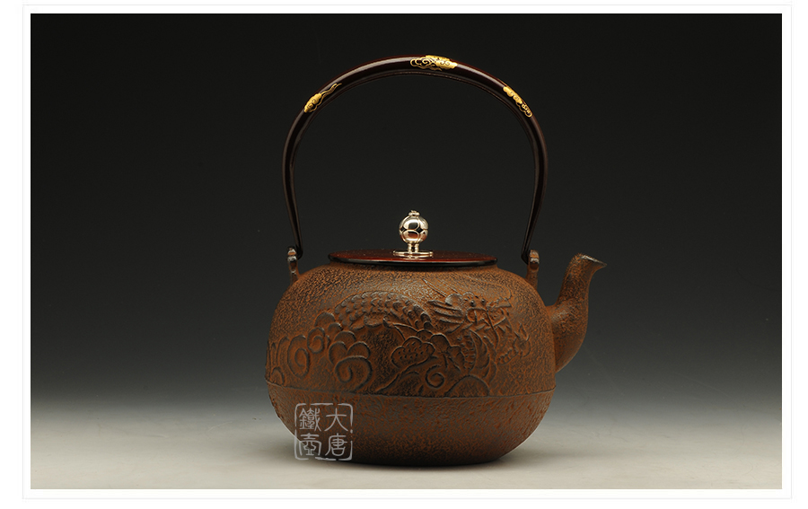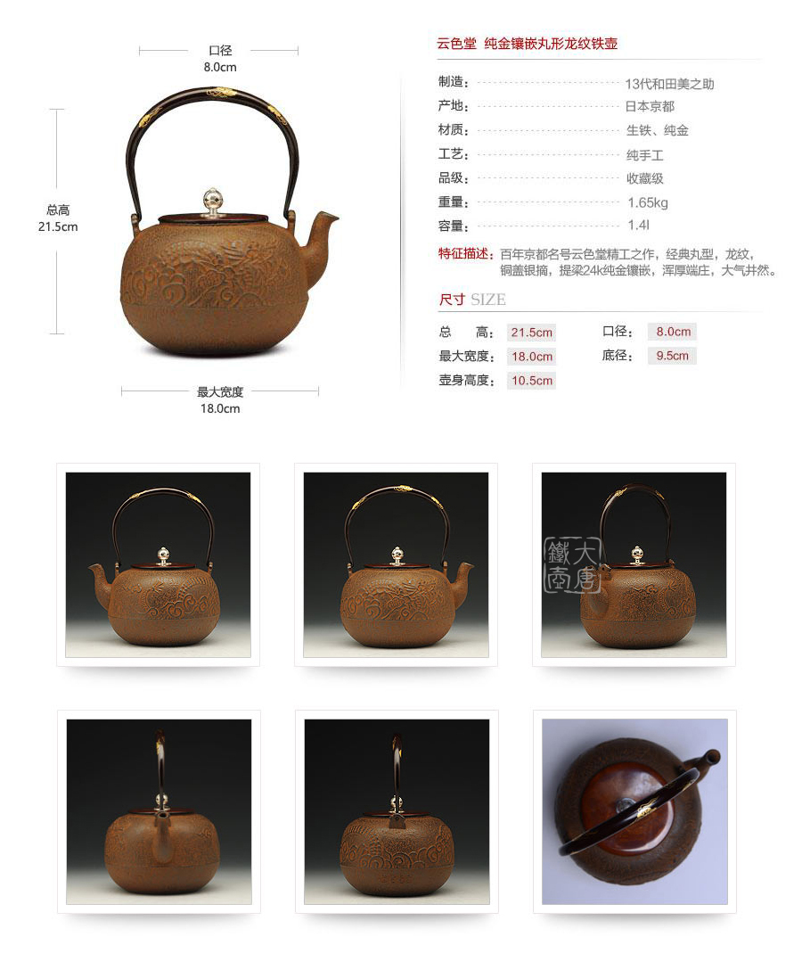 云色堂 提梁純金鑲嵌丸形龍紋鐵壺 [ 編號:45715 ]
